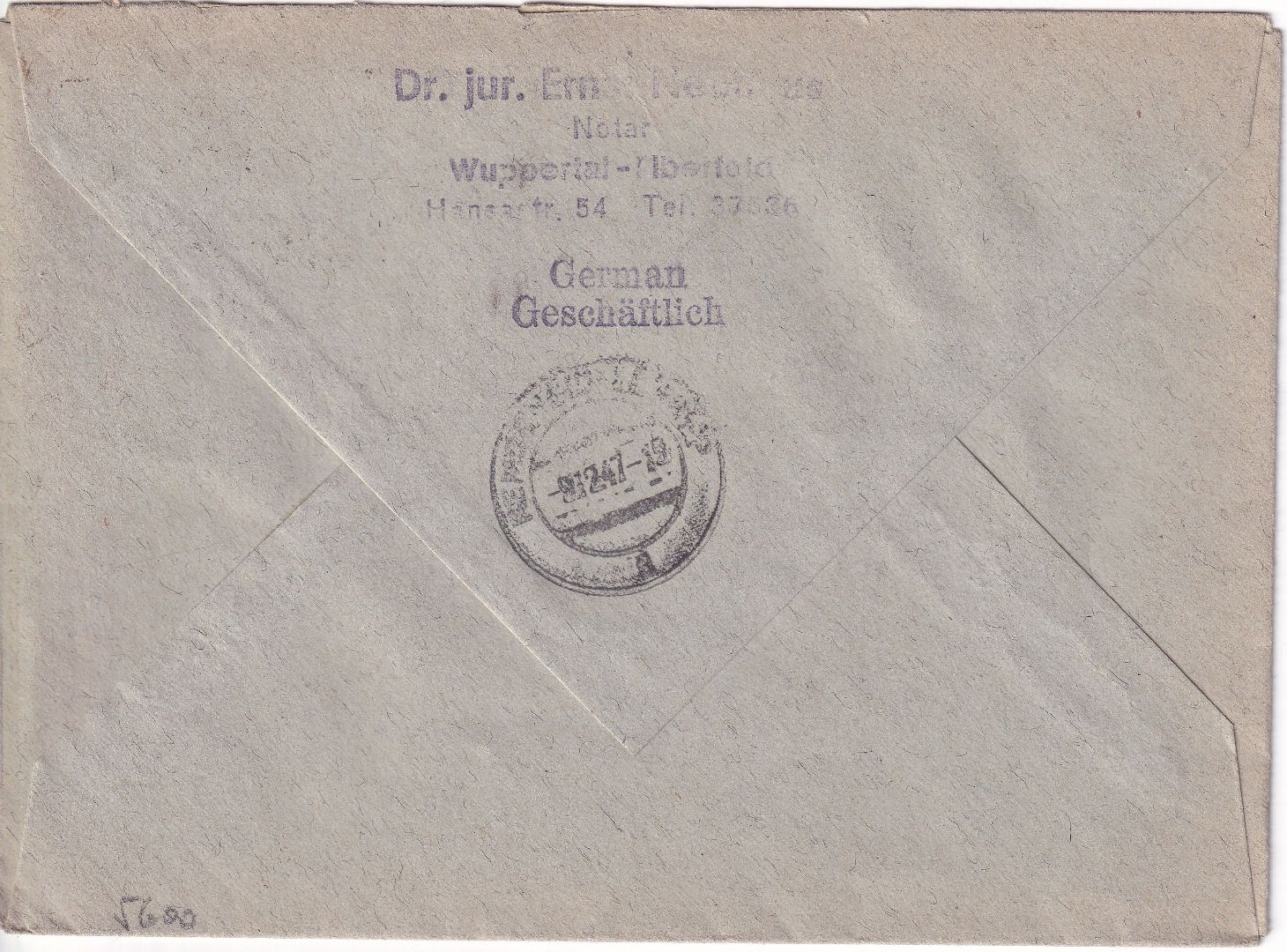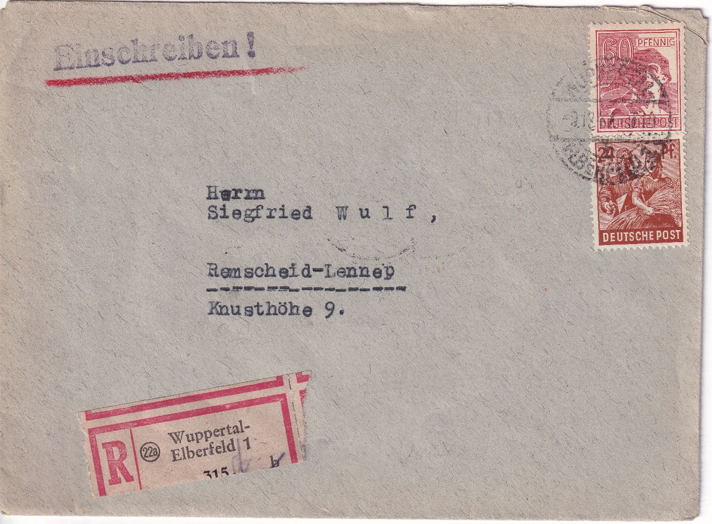 gelaufen n. Remscheid - dst./geschn. R-Zettel - ohne Inhalt