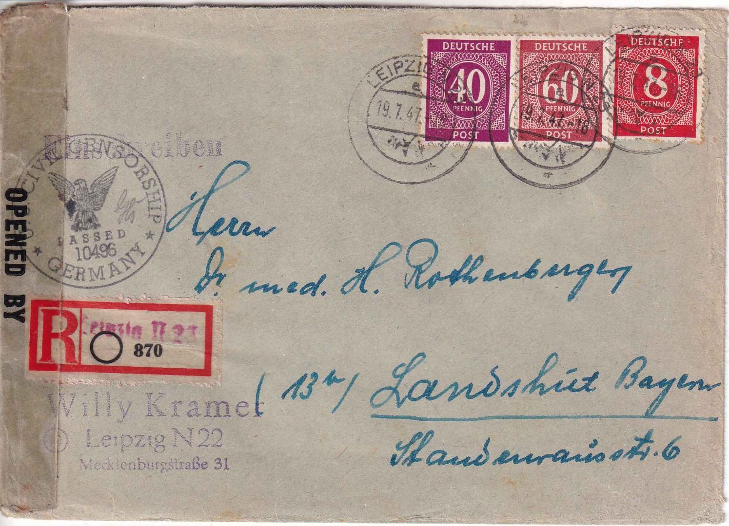 Aushilfs-R-Zettel (Zigarettenpapier) - apt. Tagesstempel - US-Zensurverschluss - ohne Inhalt