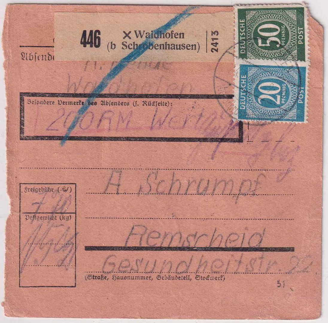 mit bezahlter Zustellgebühr - 50 Pfg. kl. Mgl. - Stichwort: Schrobenhausen