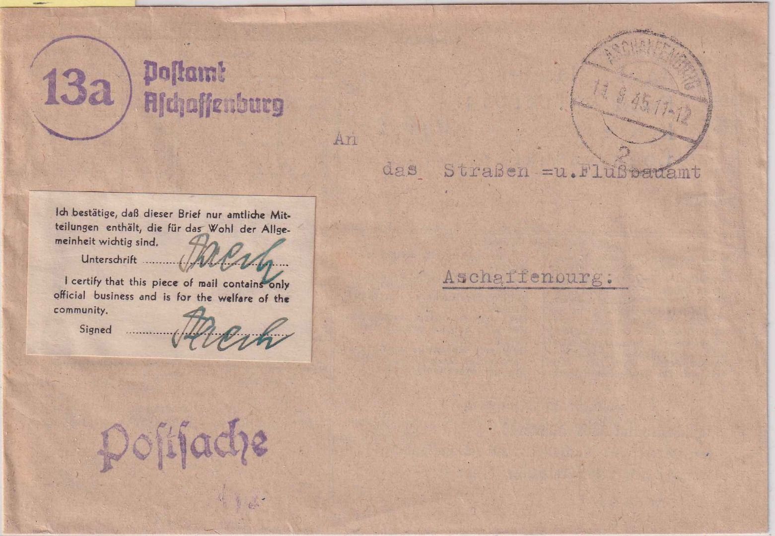 Notkuvert (innen bedruckt "Fernsprechquittung" - gedruckter Zettel/Zulassungsvermerk "Ich bestätige..." - ohne Inhalt