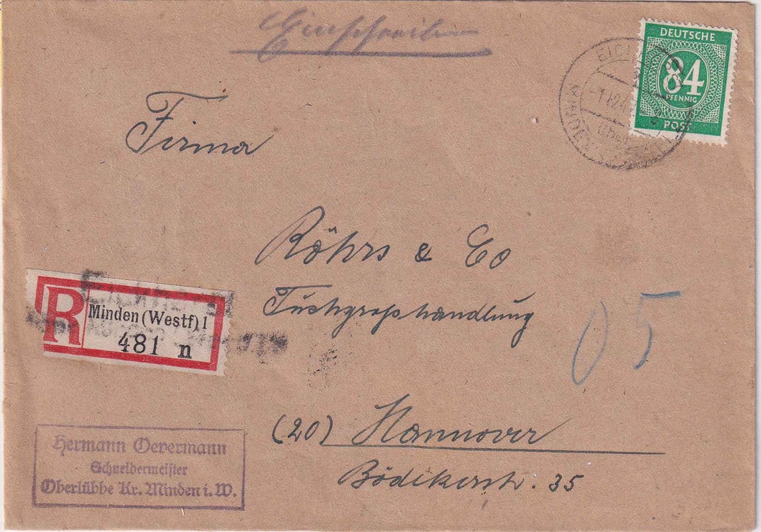 R-Zettel Minden überstempelt - ohne Inhalt - Stichwort: Hille