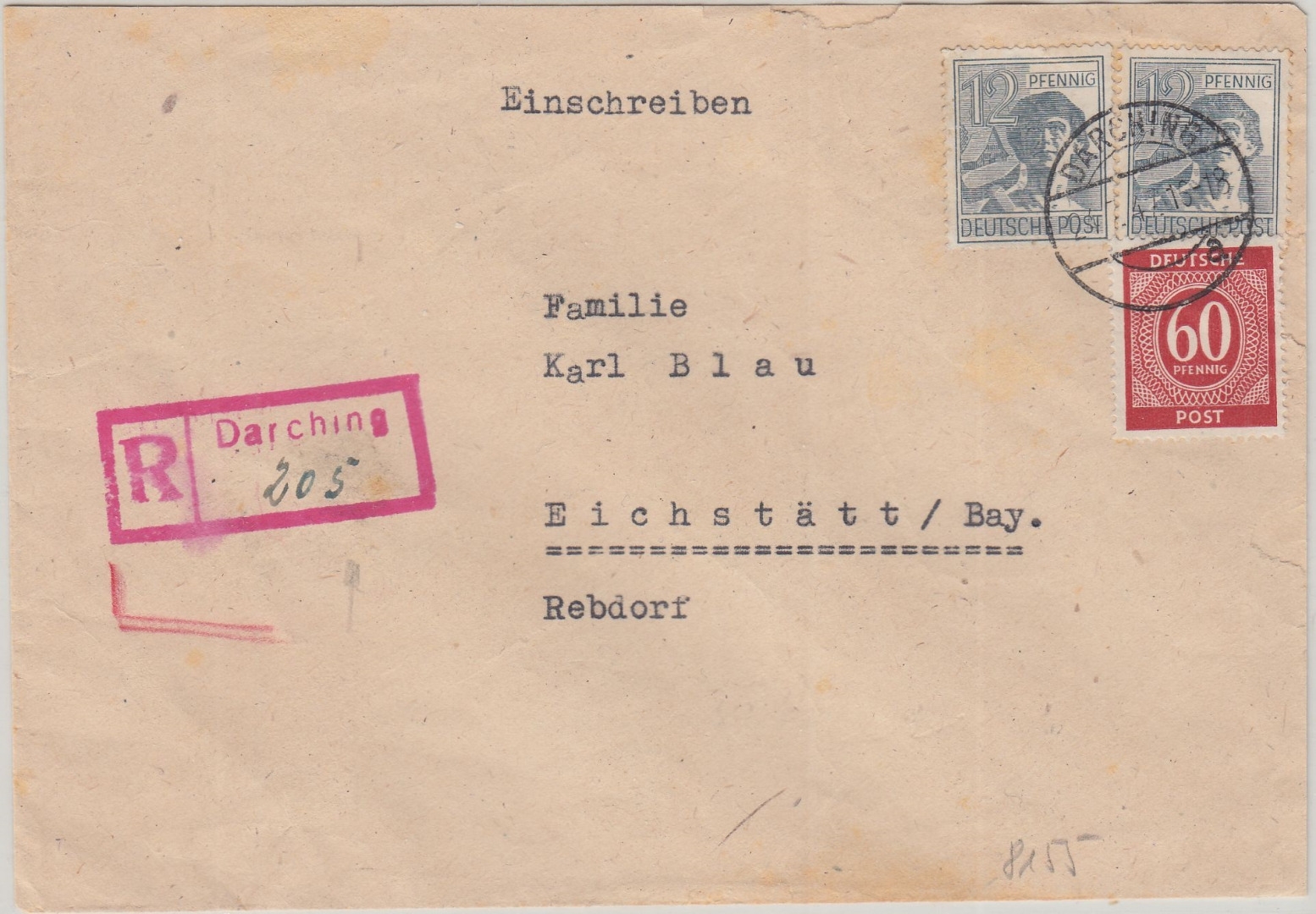 All.Bes./Kontrollrat - Darching 1947 Einschreibebrief n. Eichstätt
