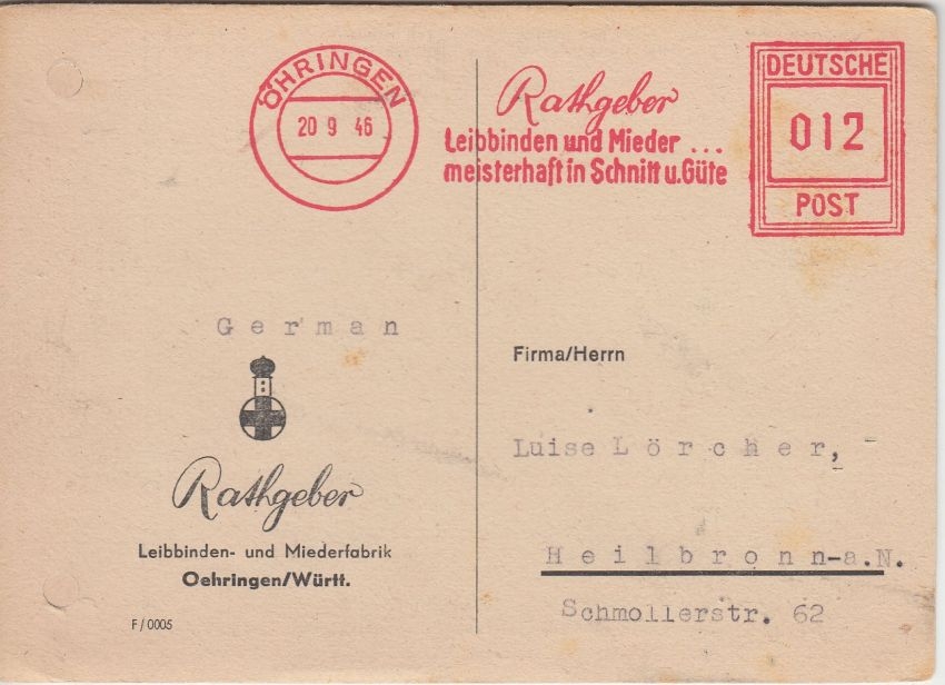 Heilbronn - Aktenlochung links sauber verschlossen - Stichwort: Textil, Mieder, Leibbinden