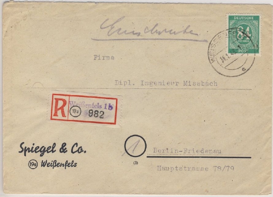 R-Zettel mit Postleitgebietszahl