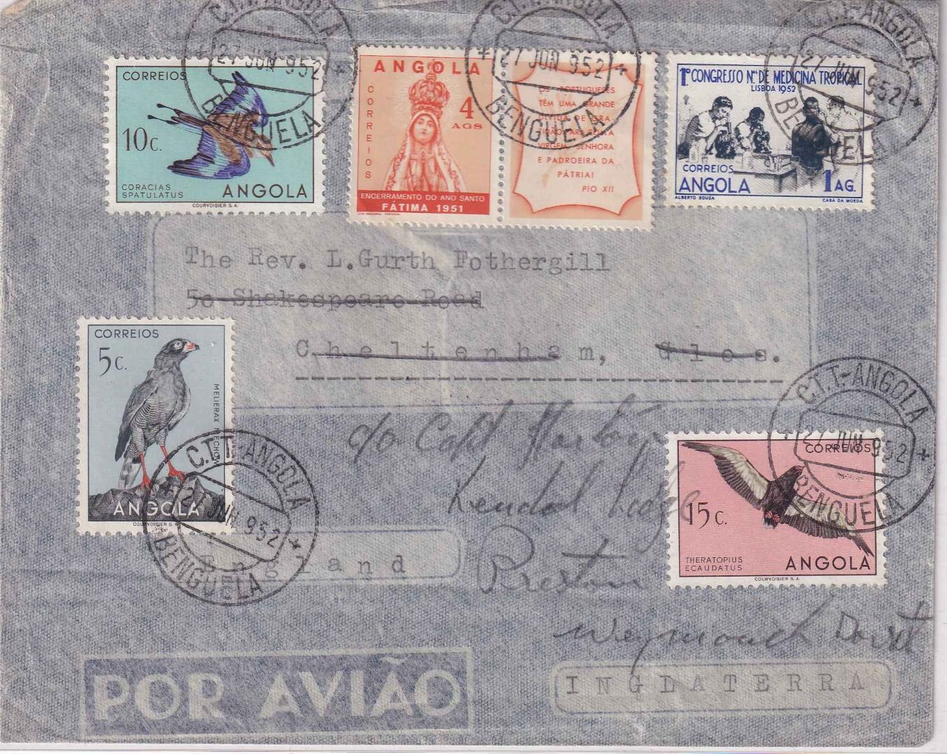 Angola - 4 A. Heiliges Jahr u.a. Luftpostbrief n. ENGLAND Benguela 1952