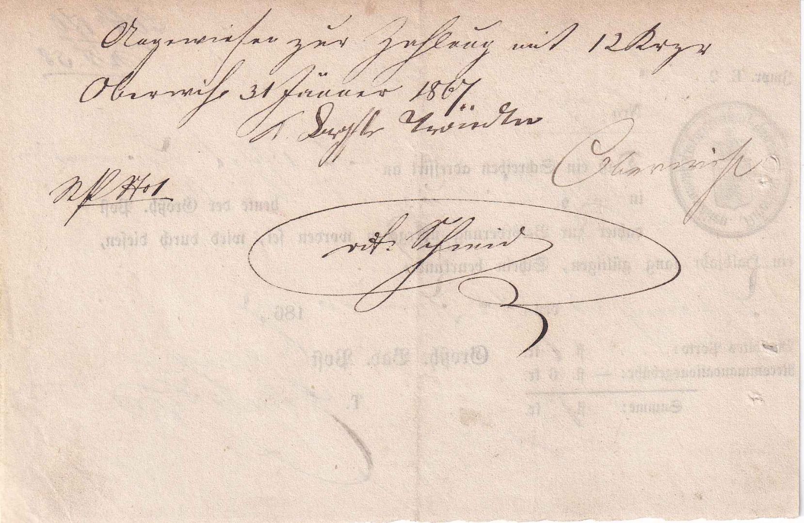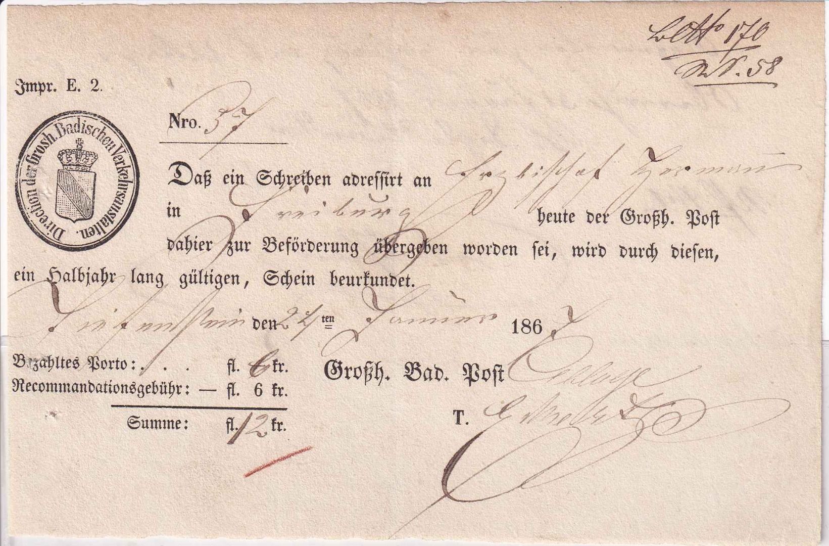 Aufgabeschein für ein Einschreiben an den Erzbischof (Hermann) v. Freiburg