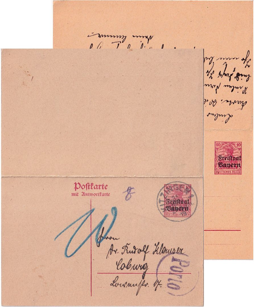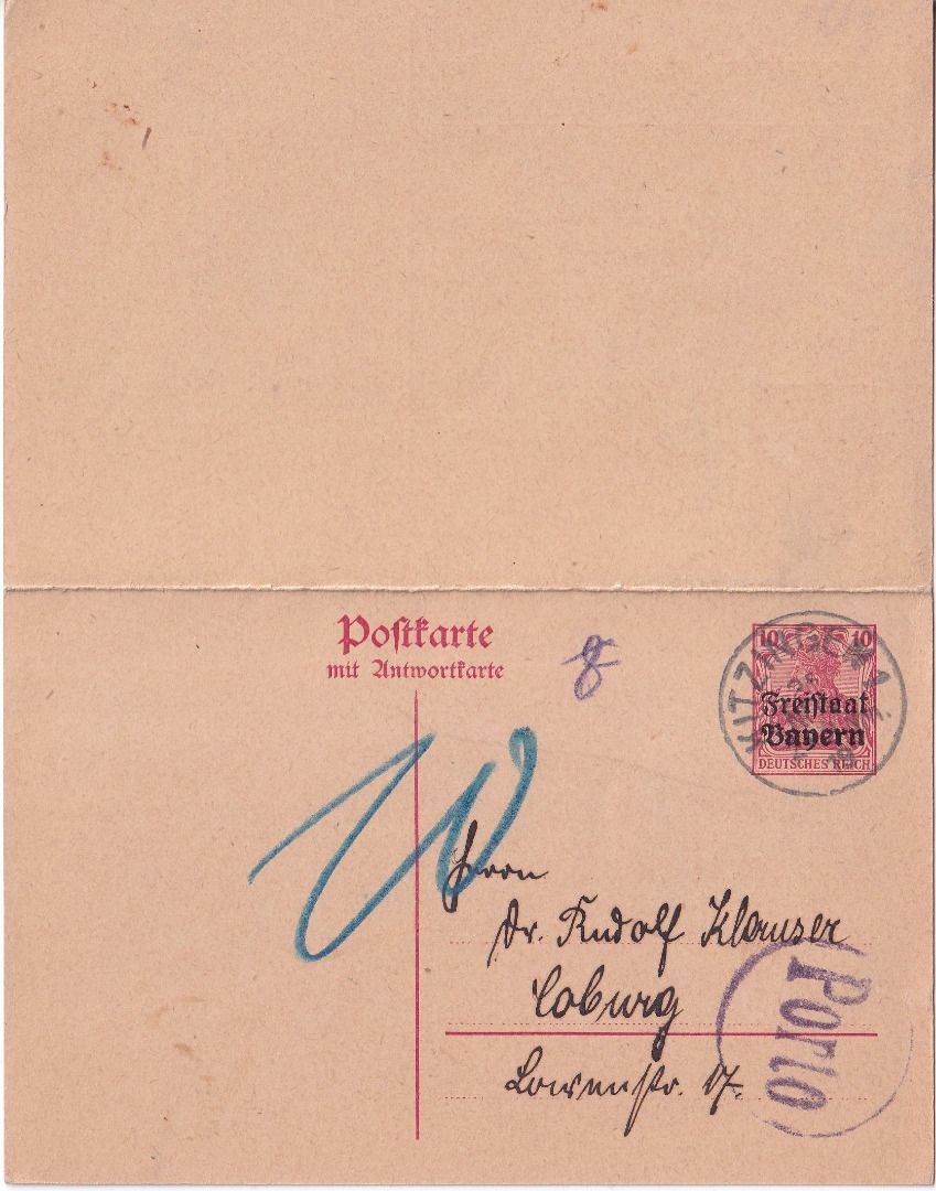 gelaufen n. Coburg - Nachporto (unterfrankiert) - A-Teil ungebraucht anhängend