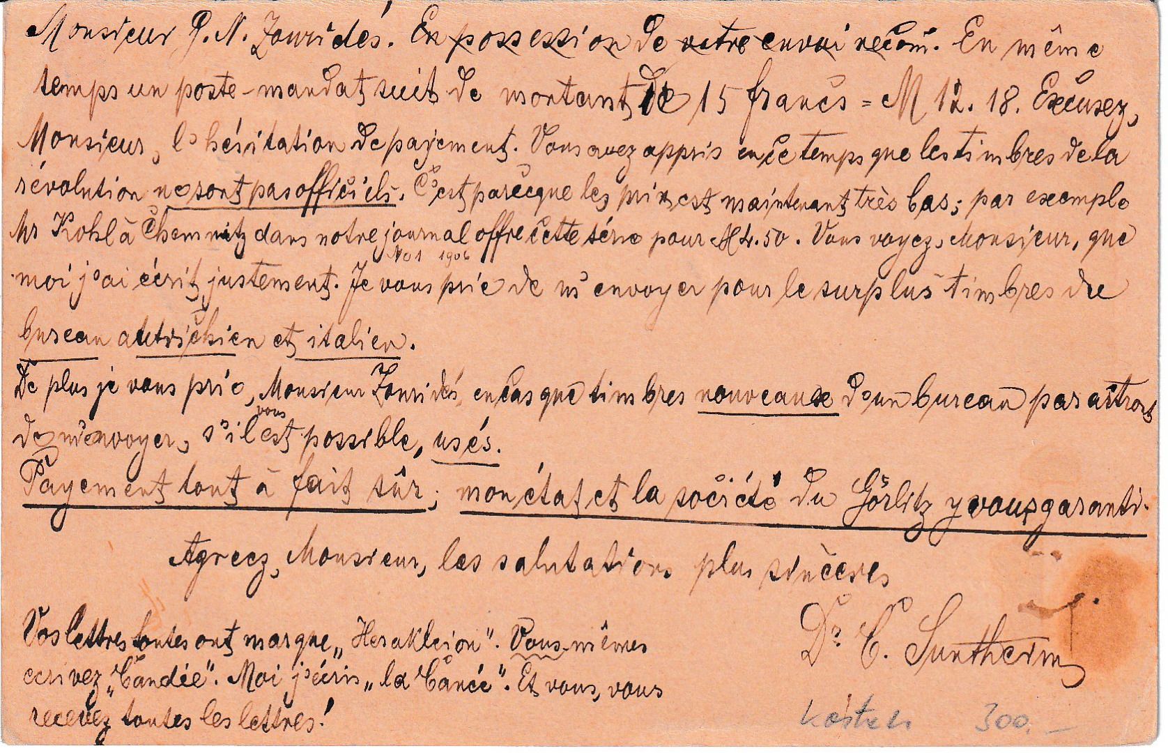 vds. links Haftspur/Fleck - gelaufen n. Candia (Iraklion) - seltene Destination !