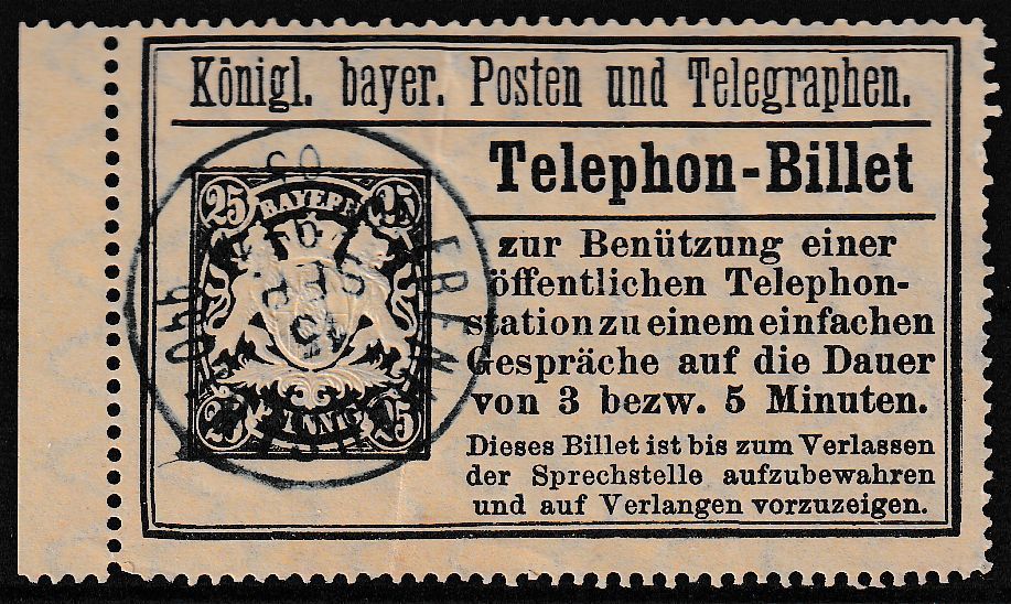 Bayern - 25 Pfg. Wappen Telefon-Billet blauer K1 Ebenhausen 15. SEP 05
