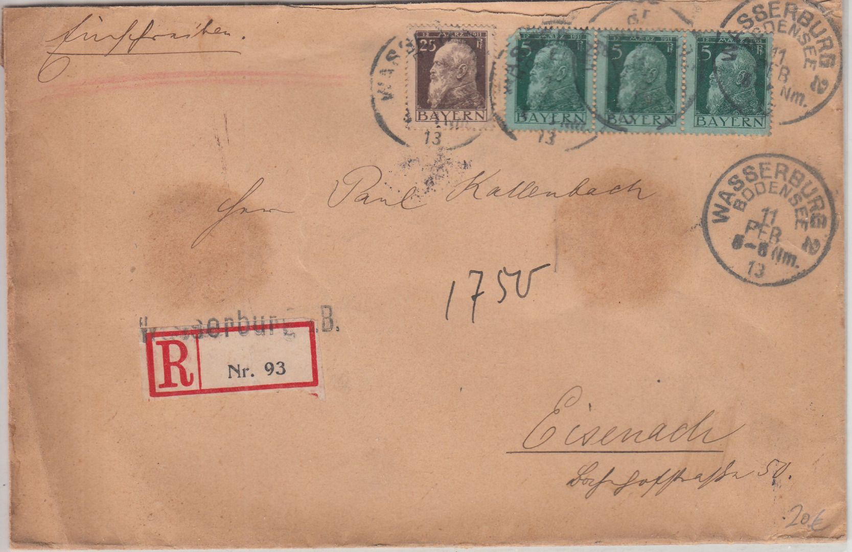 Umschlag kleine Alters-/Bedarfsspuren - ohne Inhalt - Blanko-R-Zettel mit Orts-L1