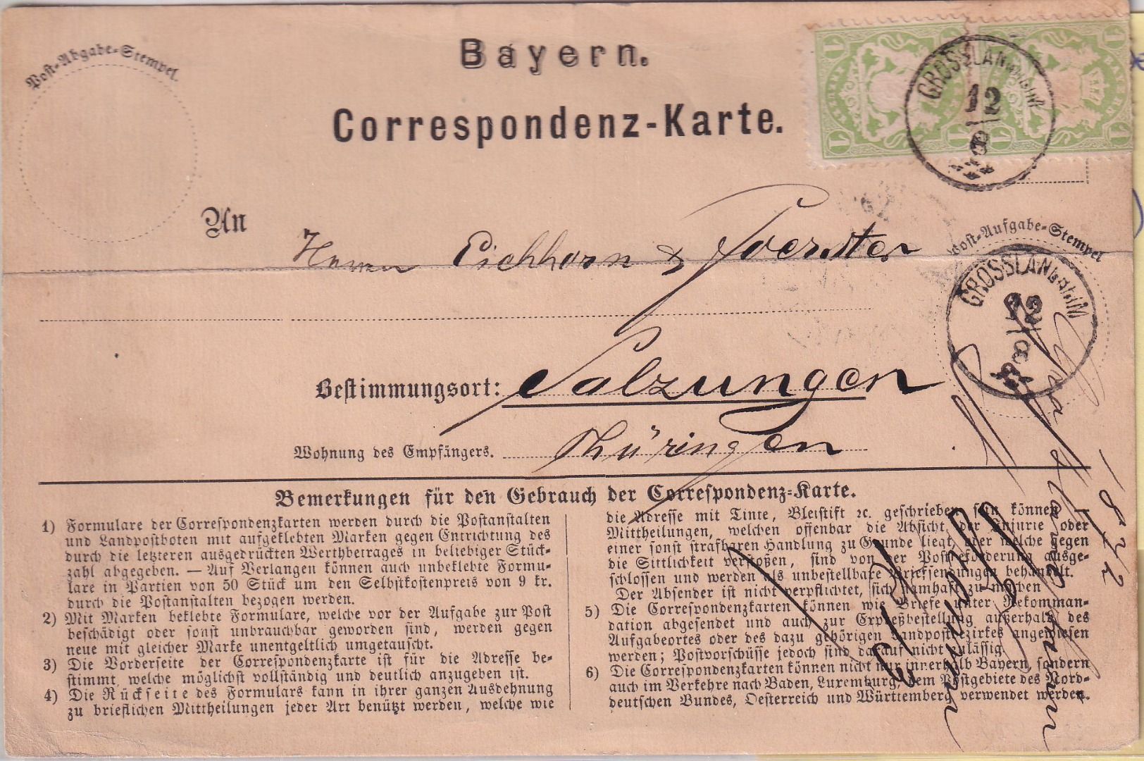 gelaufen n. Salzungen/Thüringen - rechte Marke Zähnungsmgl. - Karte waagr. Bugspur (unter der 1. Anschriftenzeile)