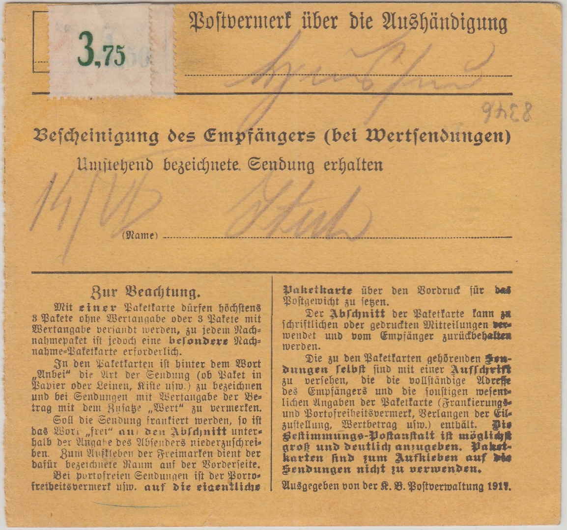 Vermerk "Zustellgebühr bezahlt" (das kann man dem Konditorlehrling ja auch nicht zumuten...)