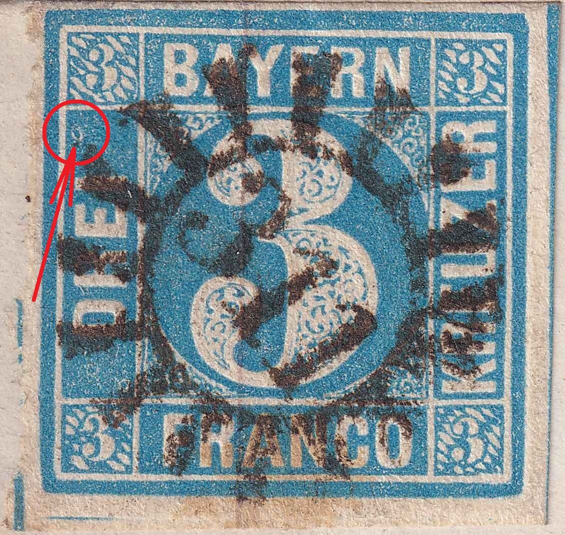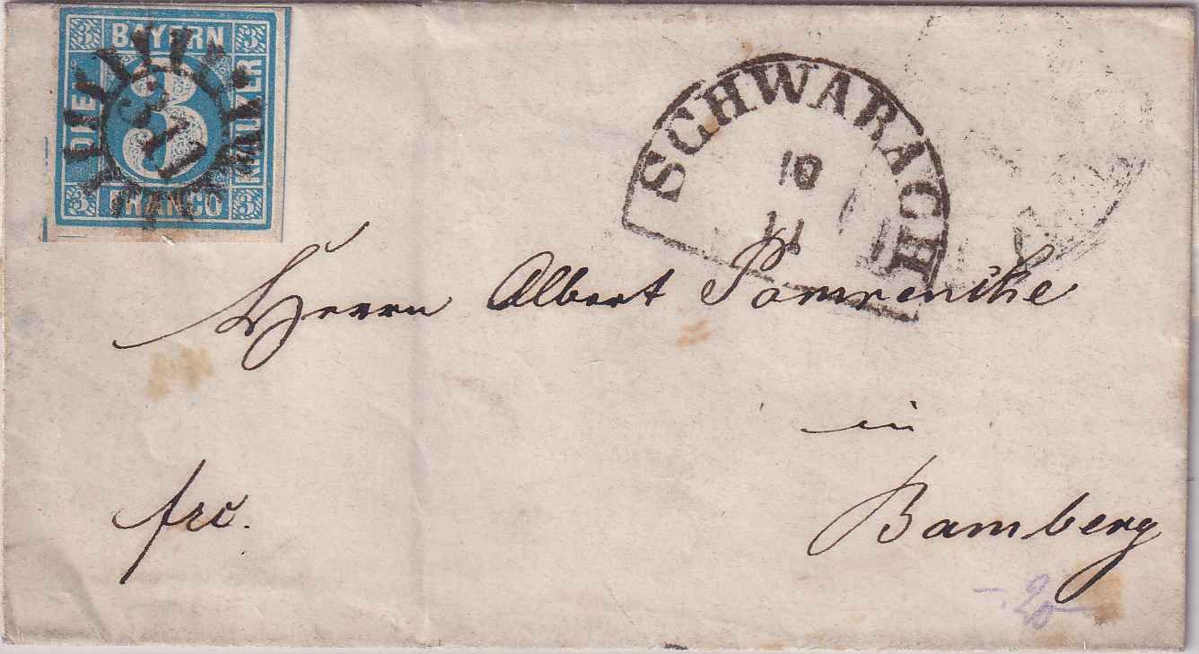 Bayern - 3 Kr. Quadrat blau (Druckzufall !) Brief gMR 311 HKS Schwabach 10/11