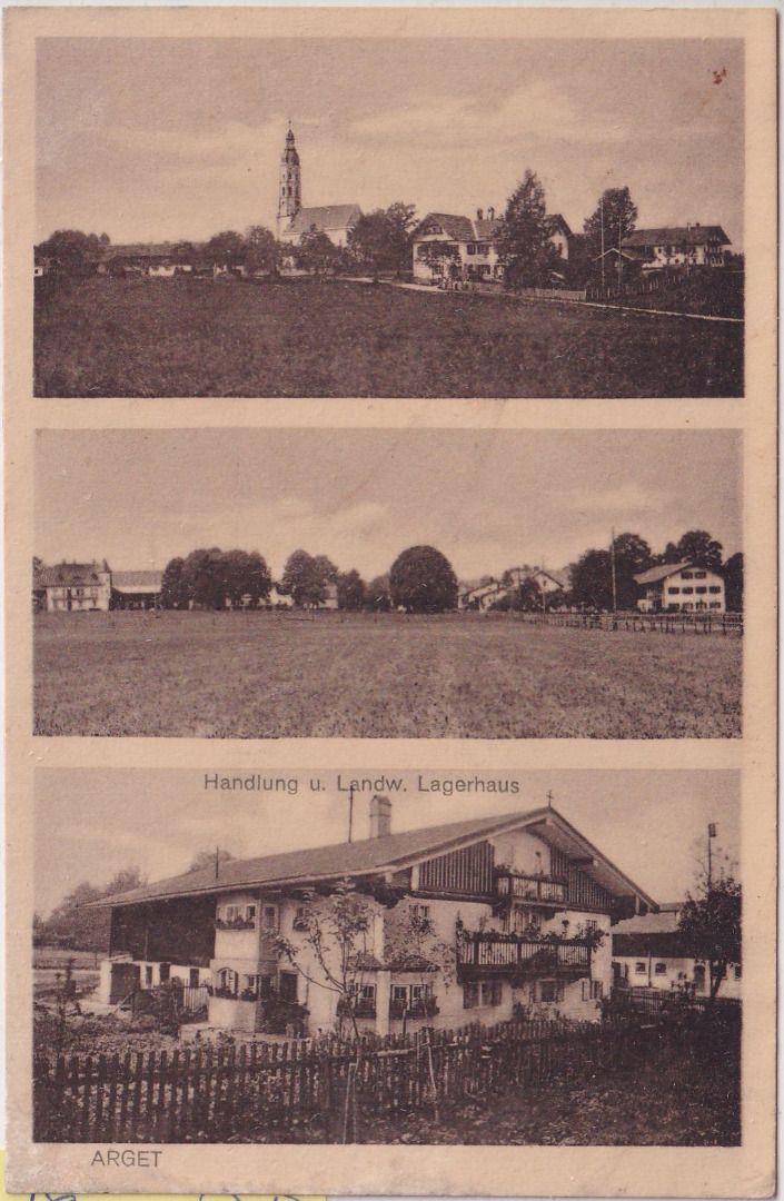 Bayern - Arget Handlung u. landw. Lagerhaus etc. sw-Mehbild-AK ca. 1920