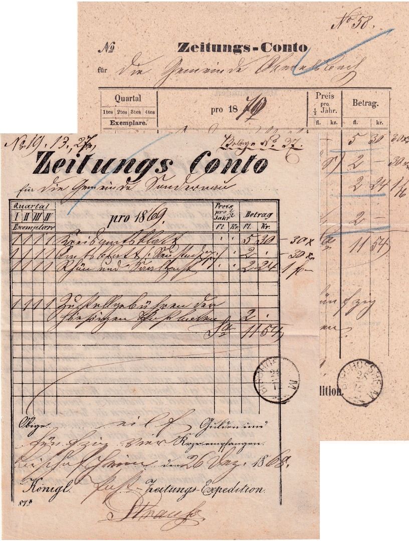 zwei versch. Vordrucke: 1x für die Gemeinde Sondernau, 1x für Oberelsbach