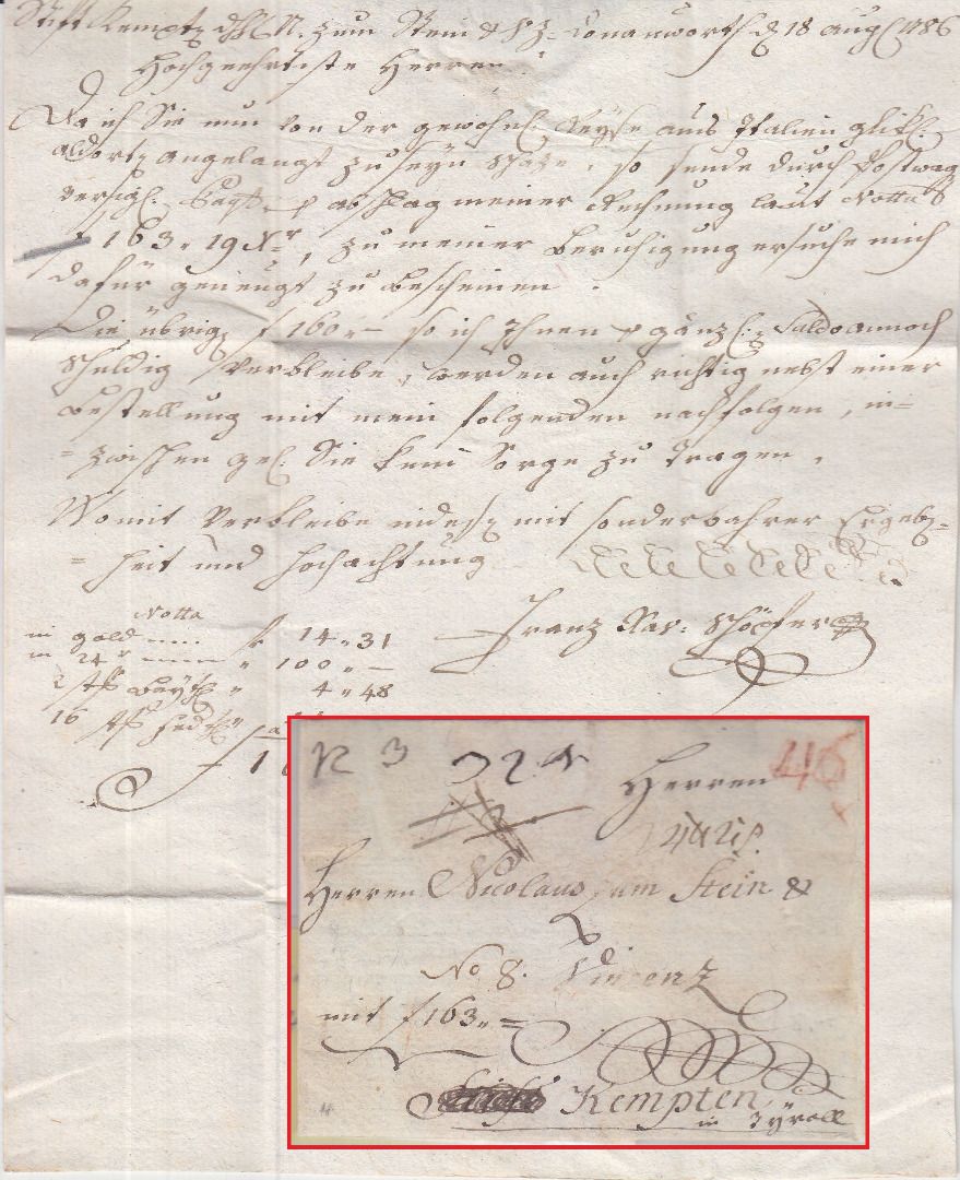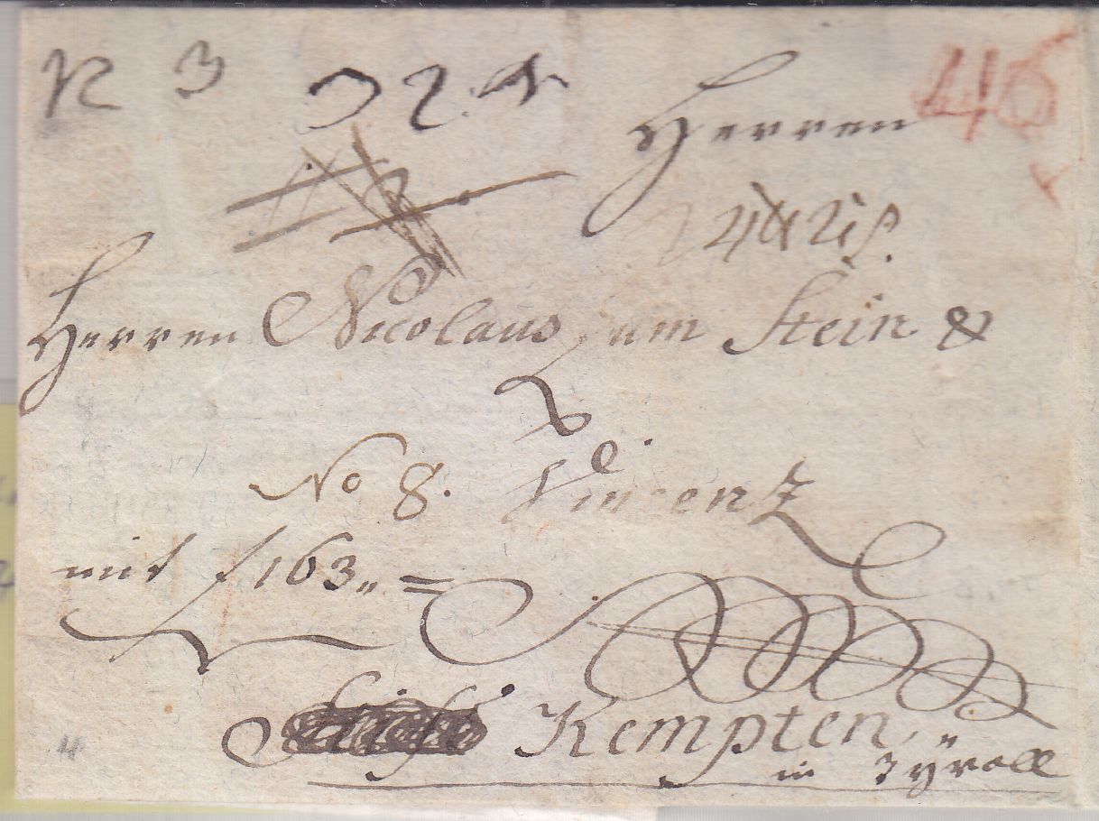 ursprünglich adressiert an "Stift Kempten", geändert in "Kempten in Tirol" ! - mit Inhalt