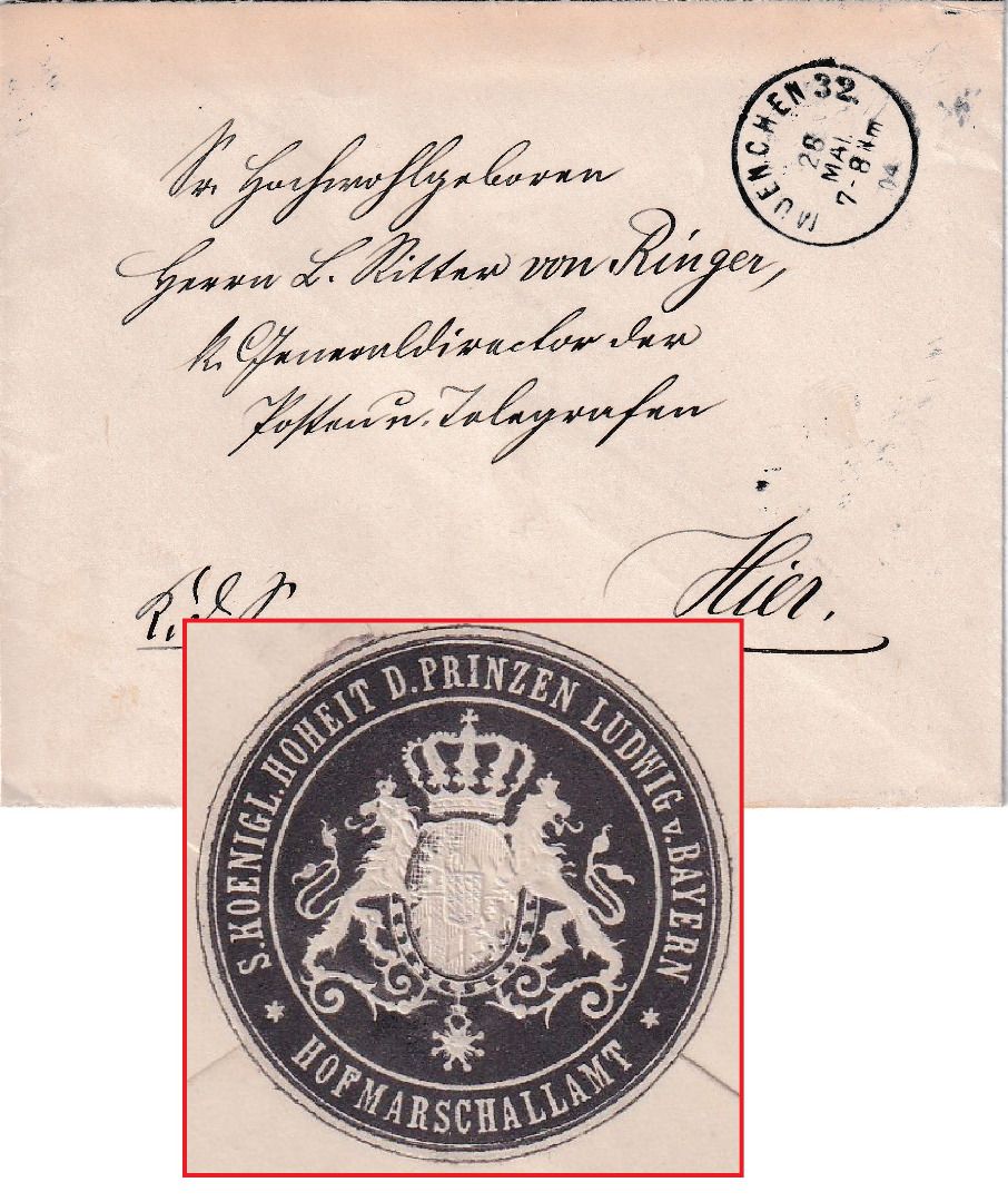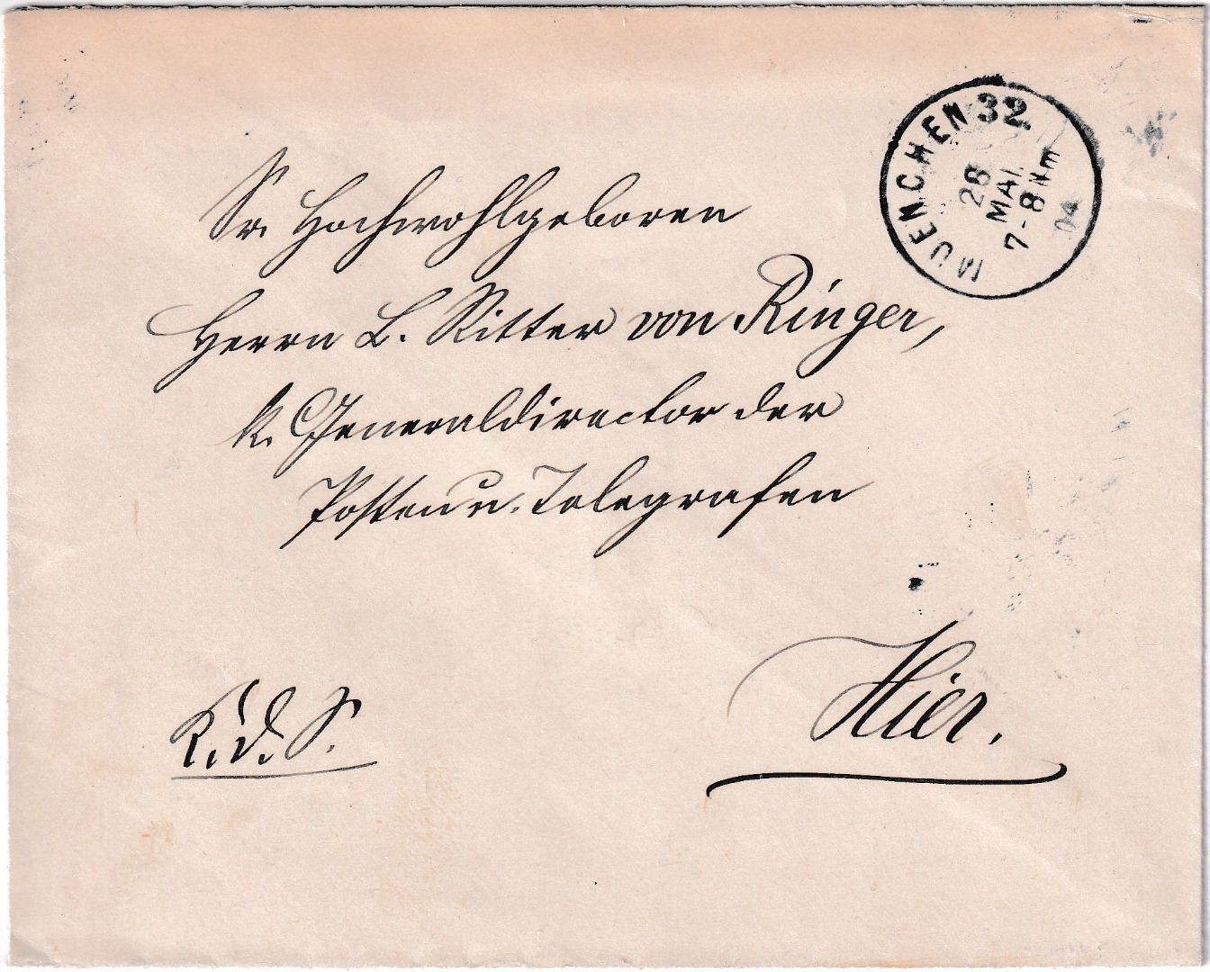 adr. an "Ritter von Ringer, Kgl. Generaldirektor der Posten u. Telegraphen" - ohne Inhalt