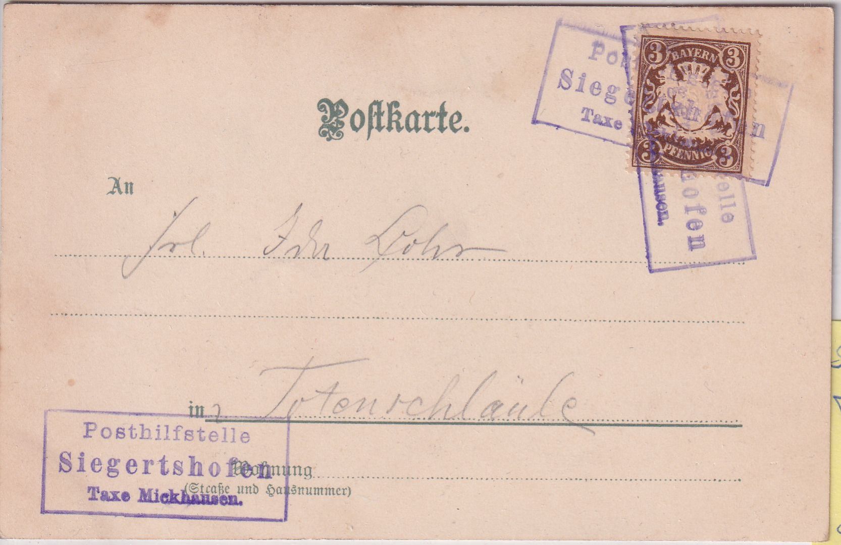 Bayern Siegertshofen T. Mickhausen Posthilfstellen-Ra3 Ortskarte/Landbestellung