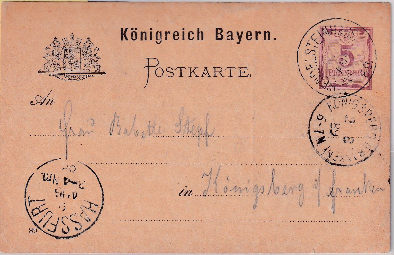 Postablage-K1 ! - gelaufen n. Königsberg/Franken