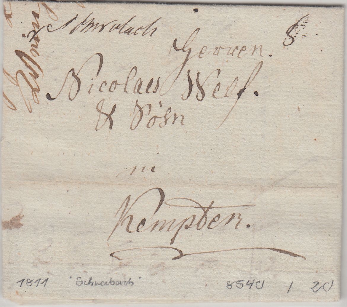 Bayern - v. Schwabach hdschr. Portobrief n. Kempten 25. AUG 1811