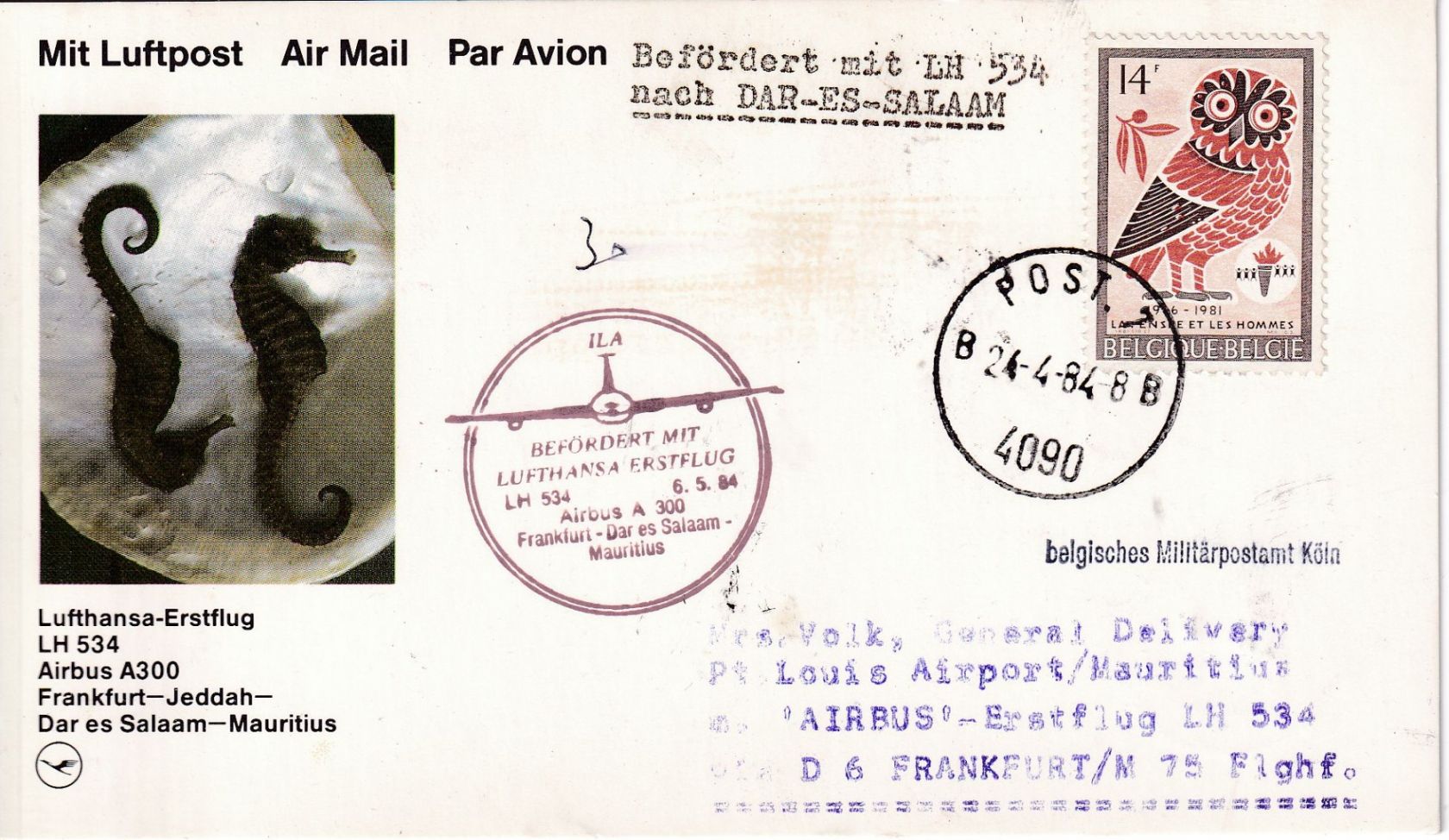 Zuleitung vom belgischen Militärpostamt Köln - Stichwort: Vogel, Eule