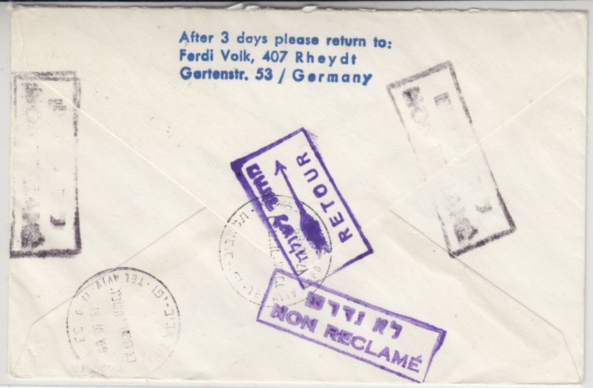 1965 n. Tel Aviv - ohne Inhalt - Retourvermerk