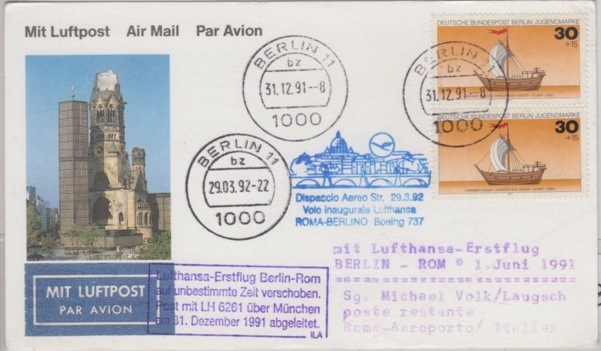 Der ursprünglich geplante Erstflug wurde verschoben (siehe Hinweisstempel)