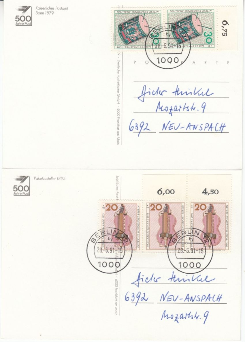 Berlin - Wofa 1973 je Mehrfachfrankatur, 4 Briefe/Briefdrucksache/Karte 1991