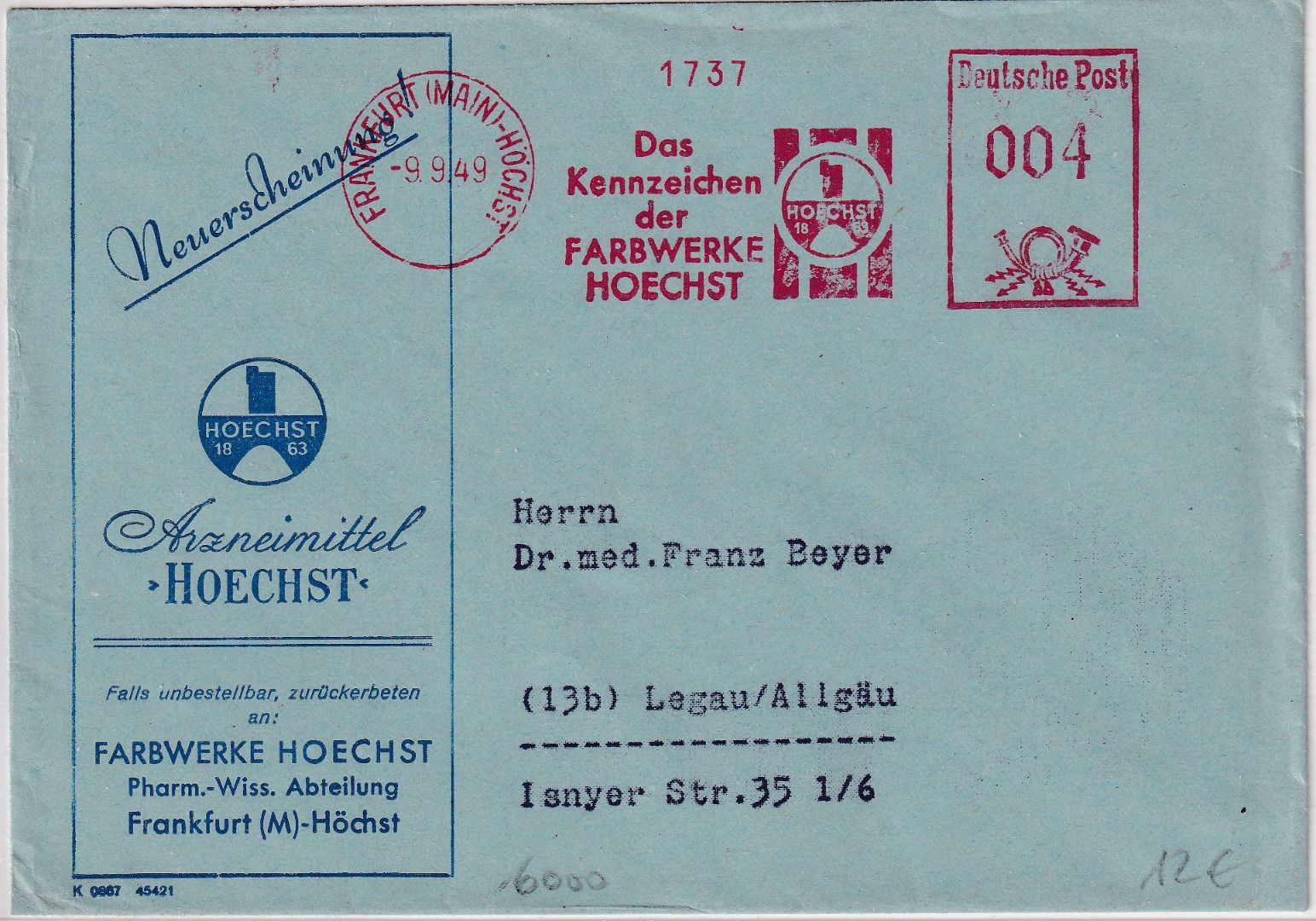 gelaufen n. Legau - Stichwort: Chemie, Medizin - ohne Inhalt