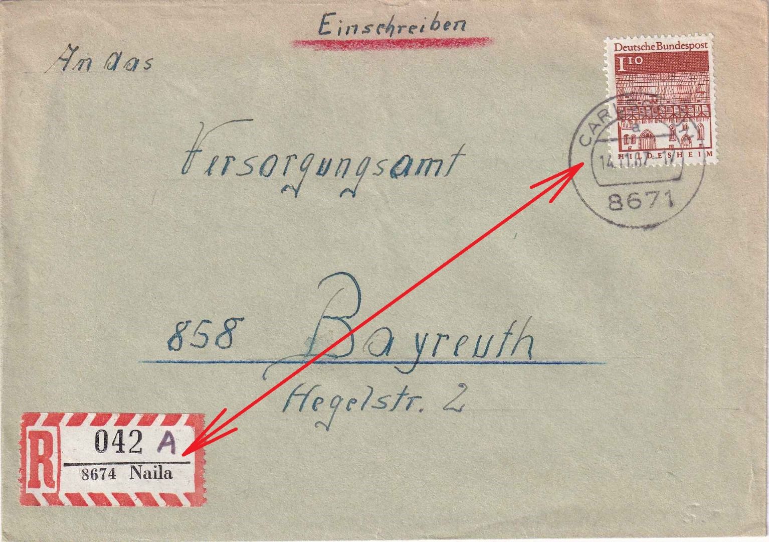 Bearbeitung als Einschreiben erst im übergeordneten Postamt ! - ohne Inhalt