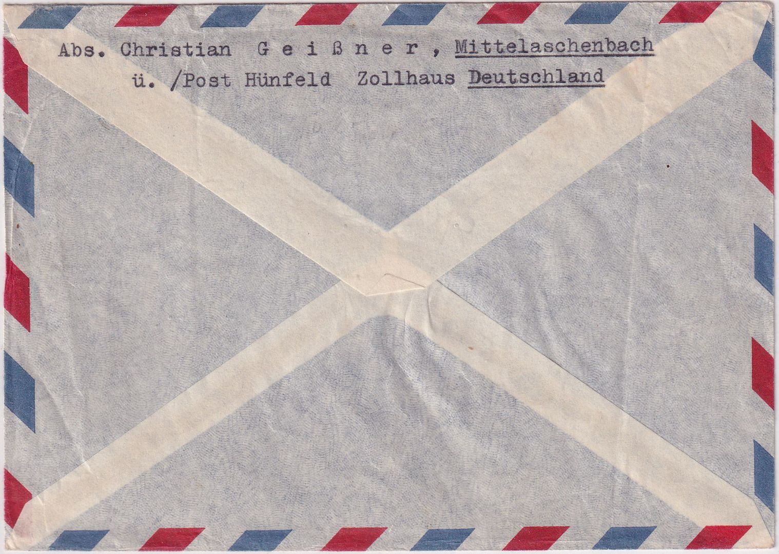 BRD - (16) Mittelaschenbach ü. Hünfeld Landpost-Ra2 Luftpostbrief n. USA 1961