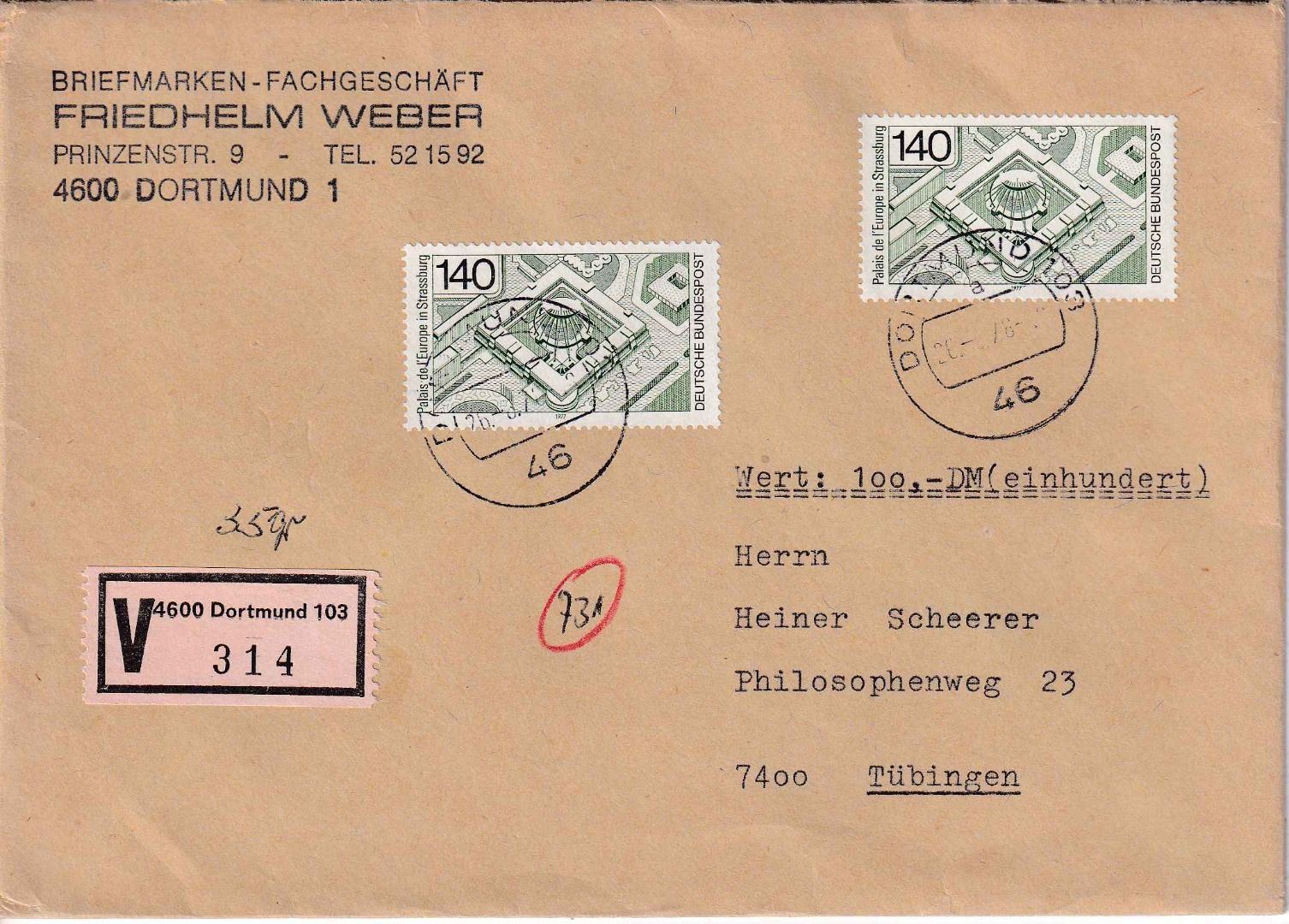 Tarif: 80 Pfg. Brief bis 50g + 200 Pfg. Wertgebühr = 280 Pfg. - ohne Inhalt