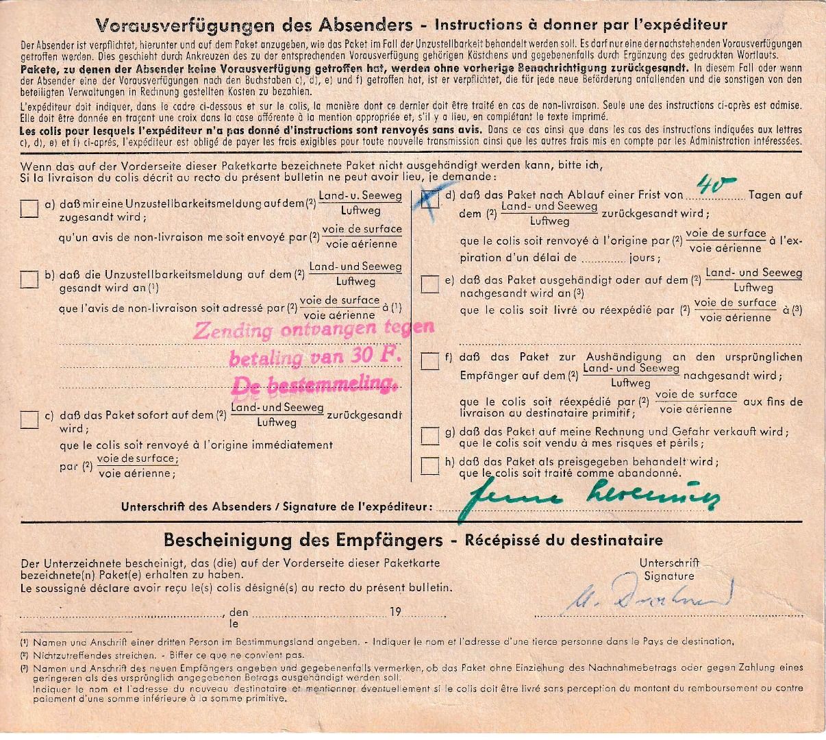 gelaufen n. Antwerpen - Formular zarter Mittelbug