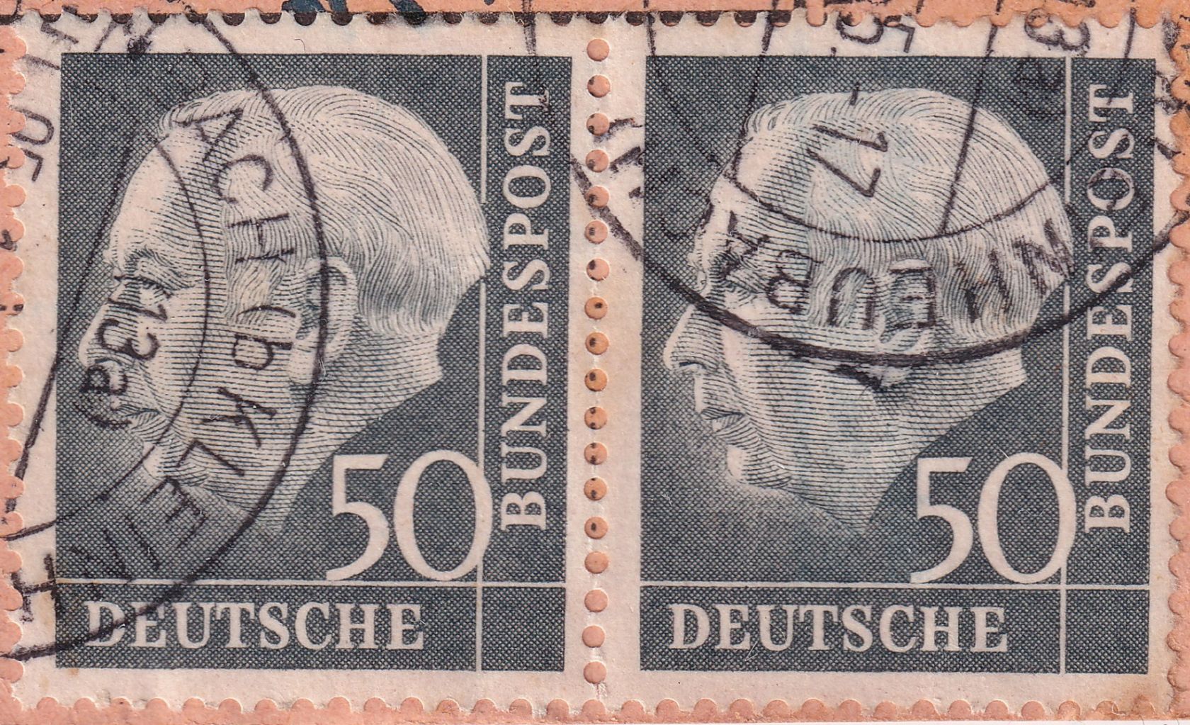 das Markenpaar war in der Mitte vorgefaltet (siehe auch Detailscan)