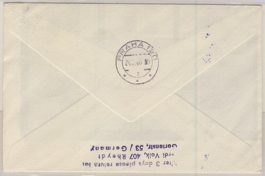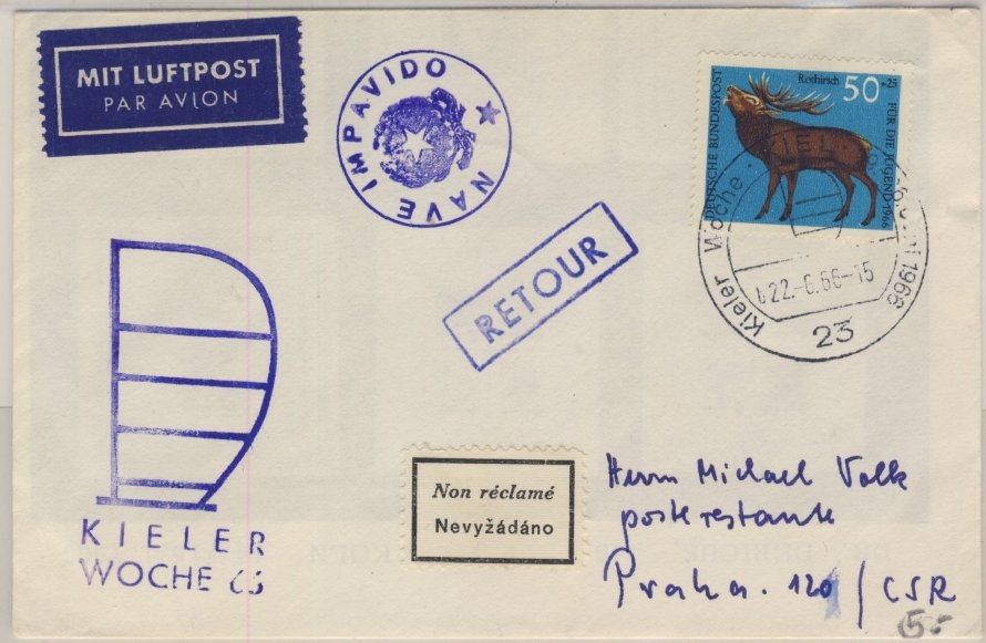 Retourvermerk - Nebenstempel d. Kieler Woche und Ital. Marine - ohne Inhalt - möglicher senkr./waagr. Farbstreifen = Scan-Fehler