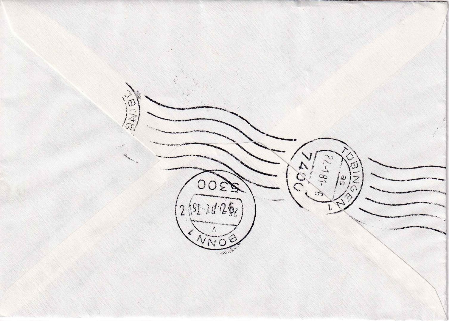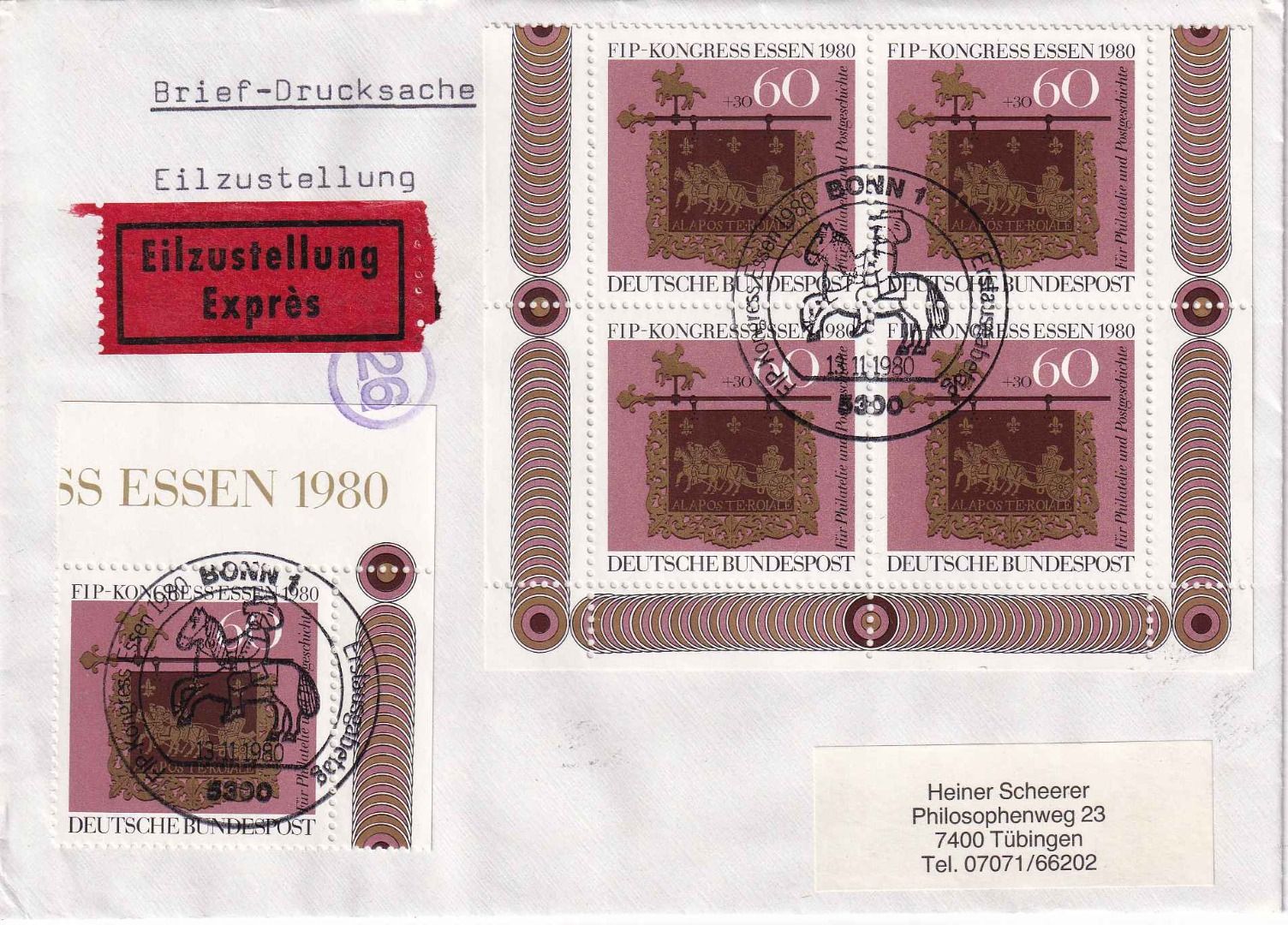 gelaufen n. Tübingen - portorichtig: 50 Pfg. Briefdrucksache + 250 Pfg. Eilgebühr - ohne Inhalt