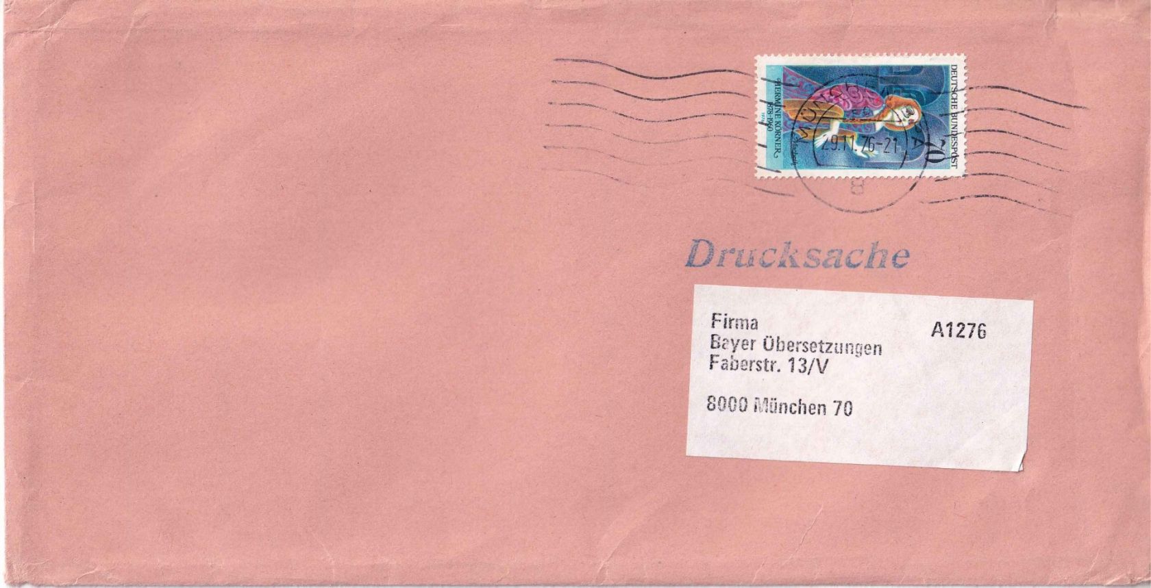 BRD - 70 Pfg. Hermine Körner Drucksache >100g (4. Gew.st.) München 29.11.76