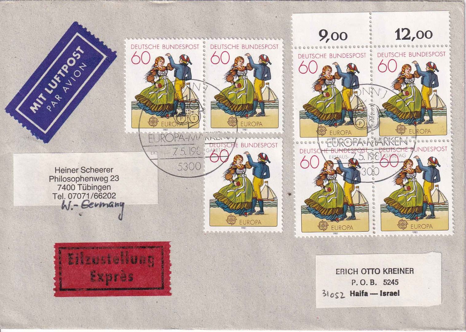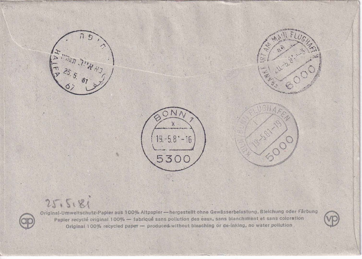 gelaufen n. Haifa - portorichtig: 90 Pfg. Brief bis 20g + 250 Pfg. Eilgebühr + 4x20 Pfg. Lupo je 5g = 420 Pfg. - rs. Durchgangs- und Ank.stempel - ohne Inhalt - Stichwort: Tracht