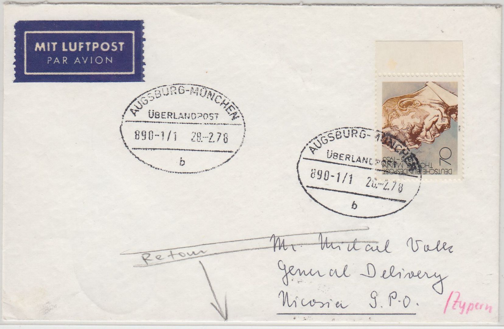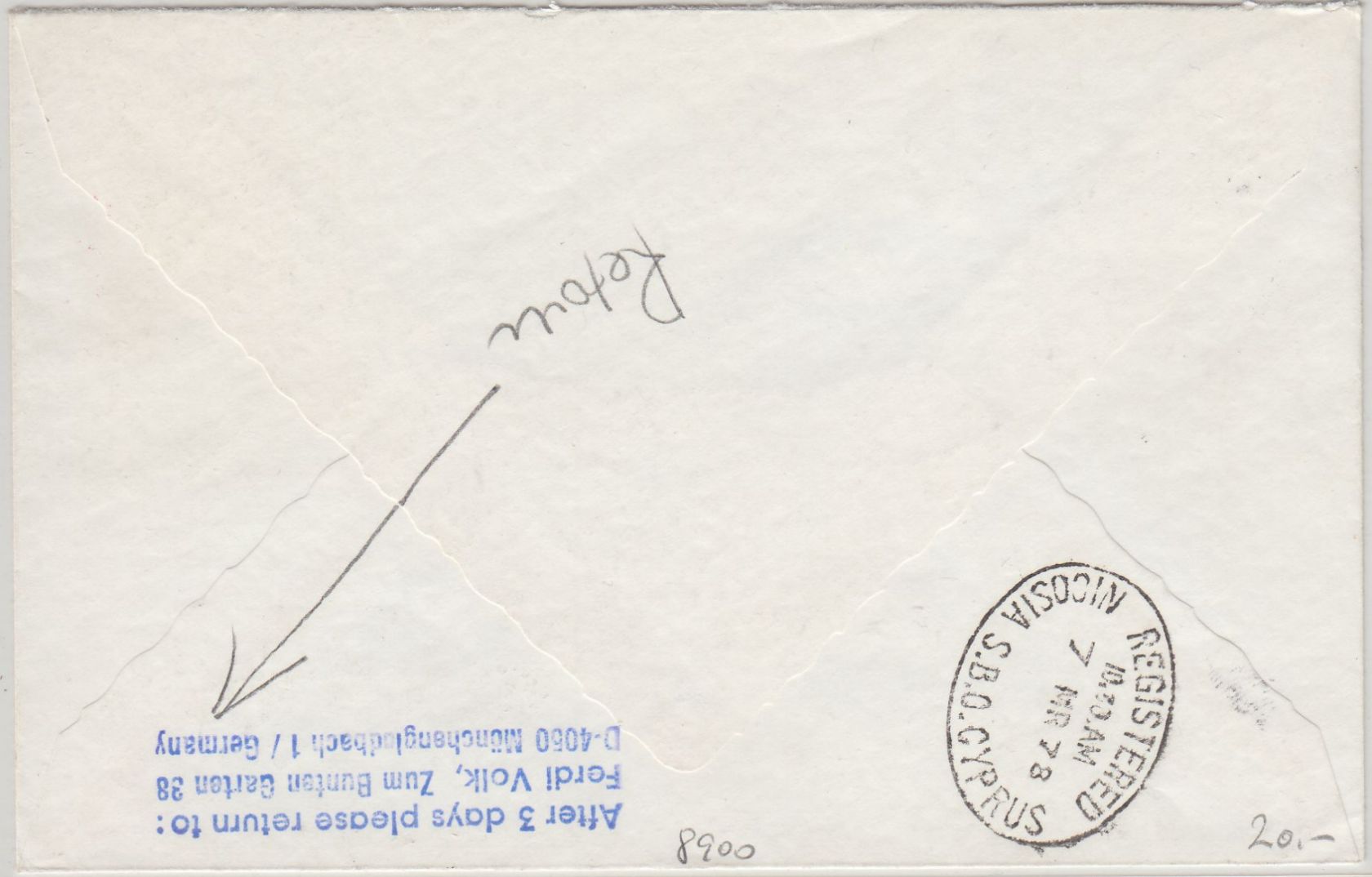 gelaufen n. Nicosia - Retourvermerk - ohne Inhalt