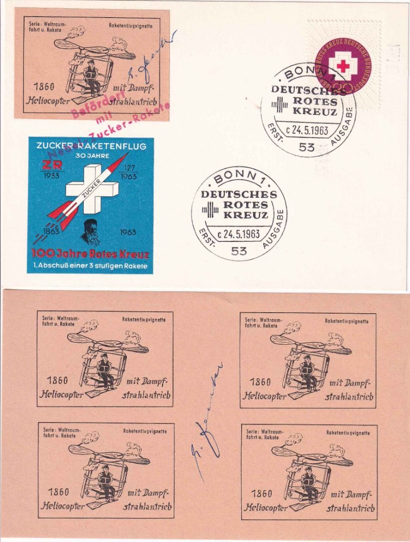 Schmuckkarte mit Vignette, Beförderungs-L3 und Originalunterschrift Zucker - zusätzlich Vignettenblock (4 Vignetten) ebenfalss mit O.U.