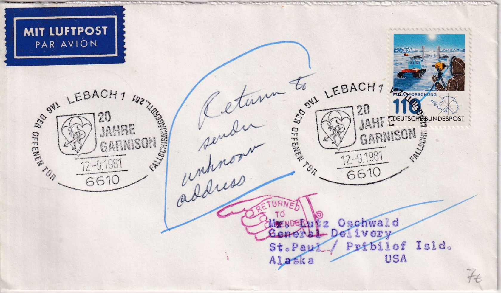 BRD - Lebach 1981 SST 20 J. Garnison Luftspostbrief n. USA/ALASKA