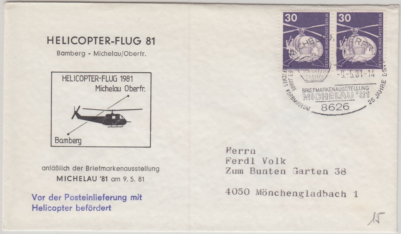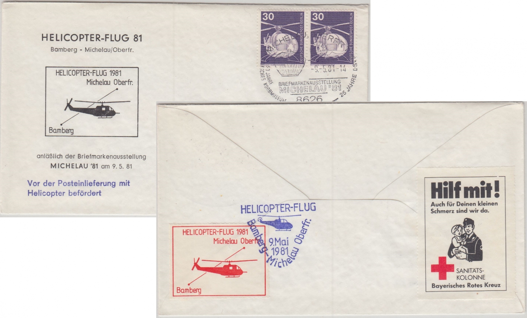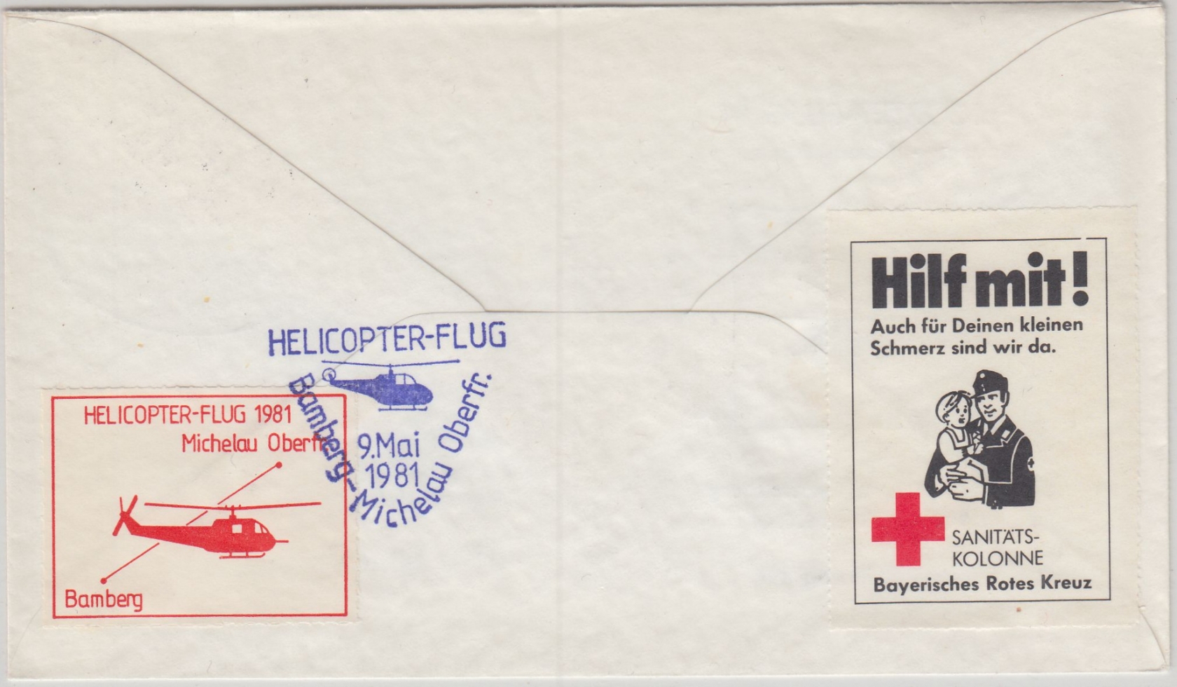 ohne Inhalt - rs. Helikoter-Vignette Flug Bamberg Michelau - ohne Inhalt