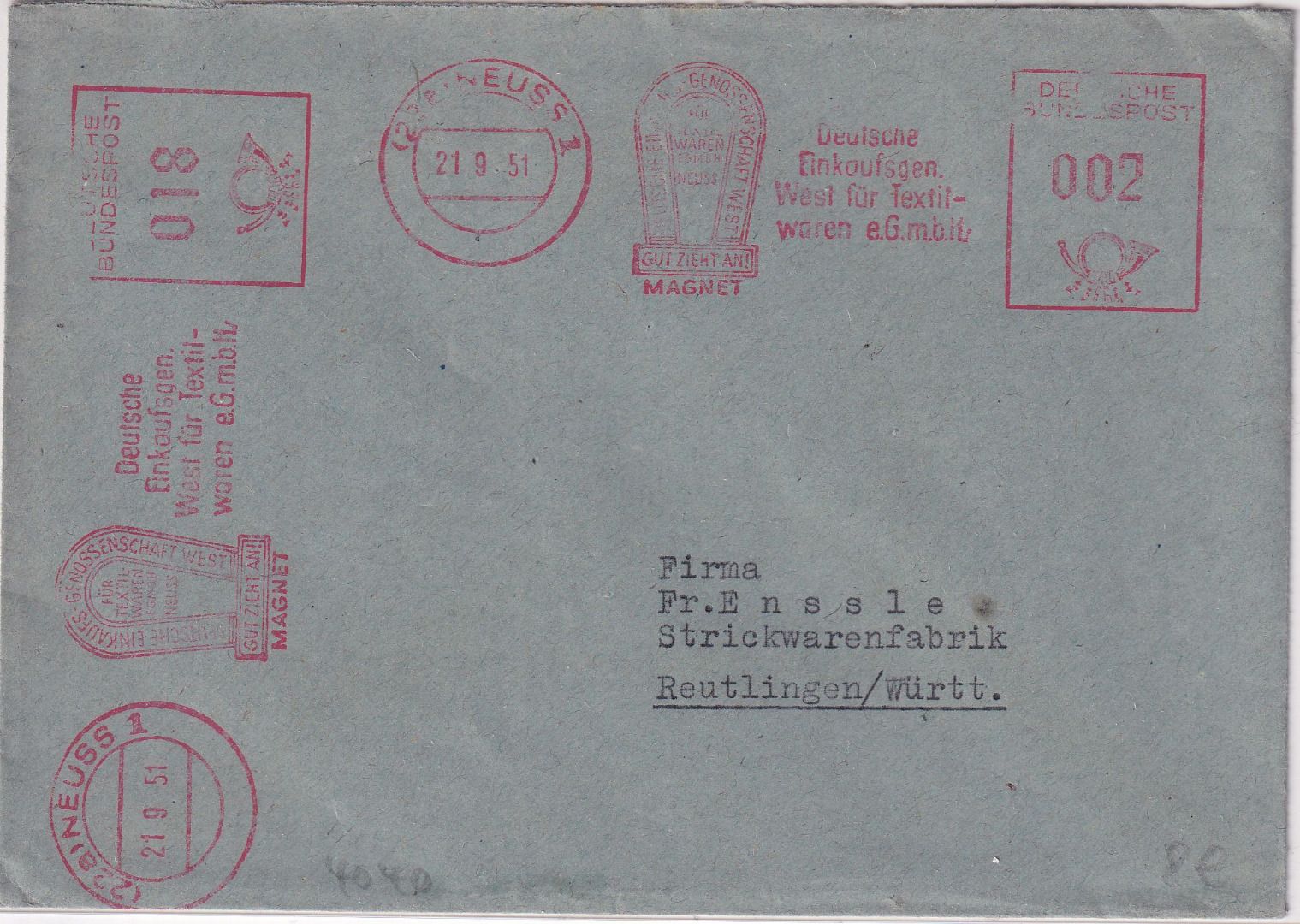gelaufen n. Reutlingen - ohne Inhalt - Stichwort: Mode, Textil