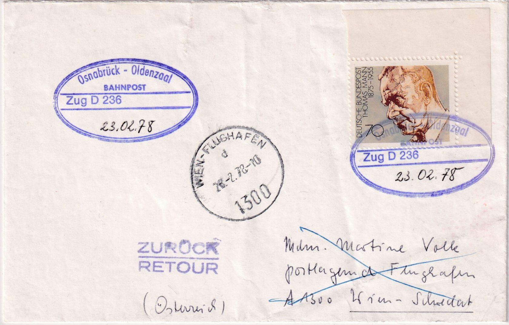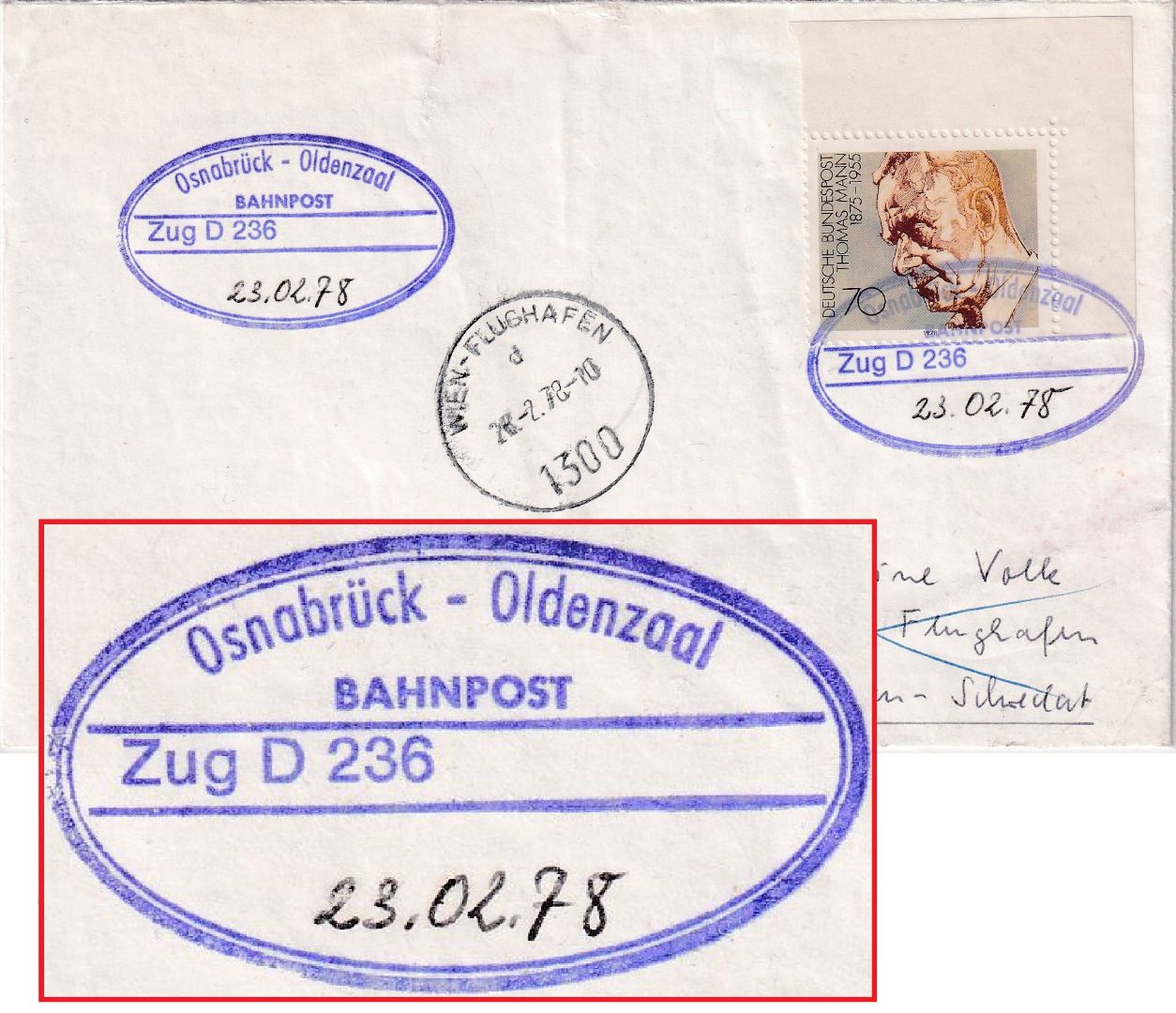 Aushilfsstempel d. grenzüberschreitenden (Deutschland/Holland) Bahnpost - ohne Inhalt