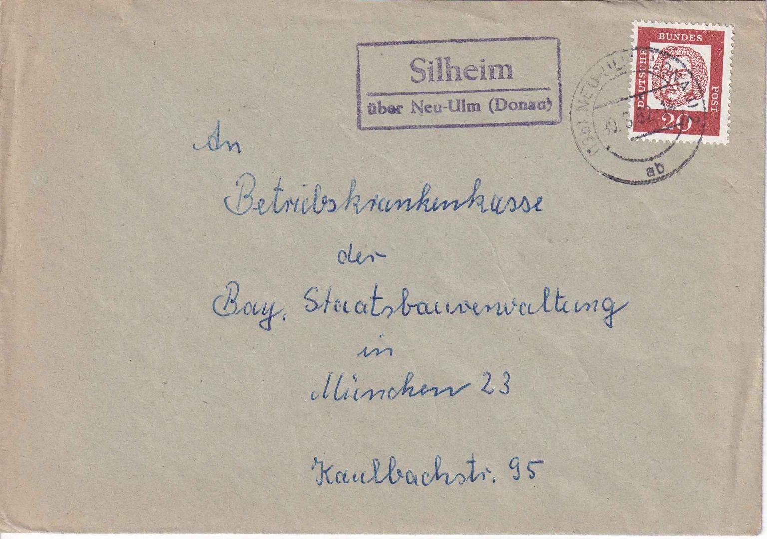 BRD - Silheim ü. Neu-Ulm (Donau) Landpost-Ra2 Brief n. München 1962