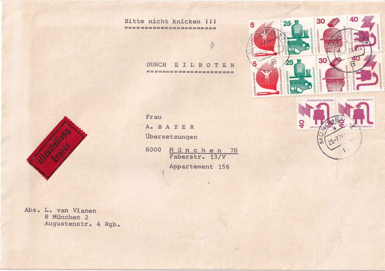 2. Gewichtsstufe bis 50g = 80 Pfg. + 200 Pfg. Eilgebühr - ohne Inhalt