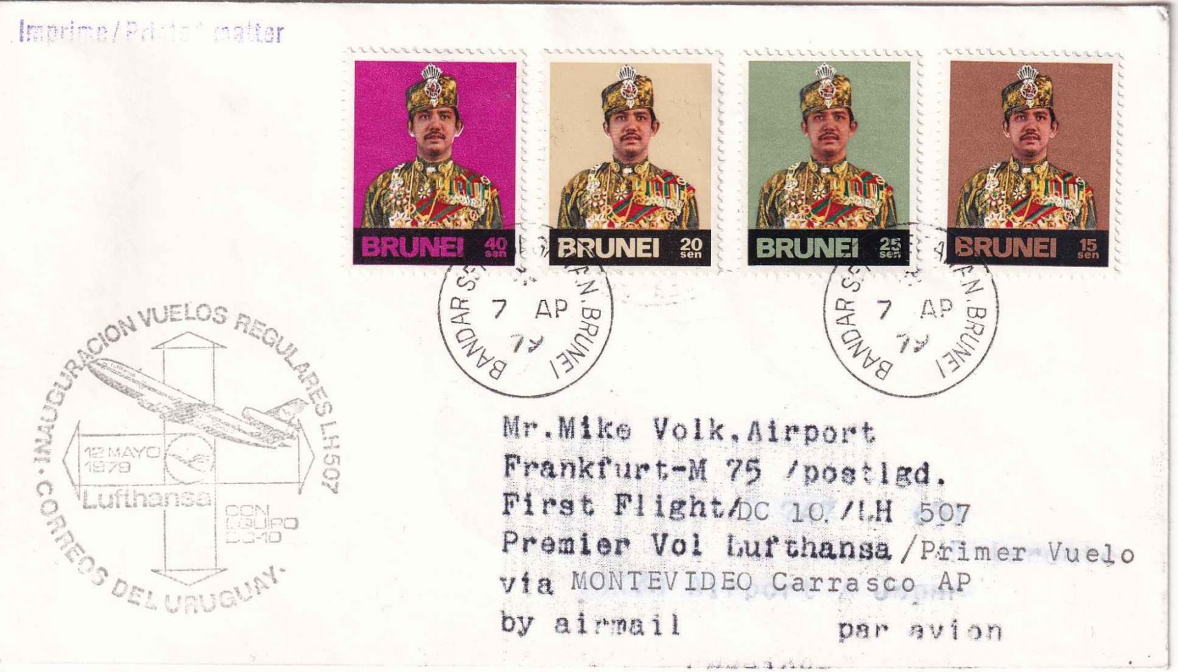 äusserst ungewöhnliche Zuleitung über Tokyo nach Montevideo !