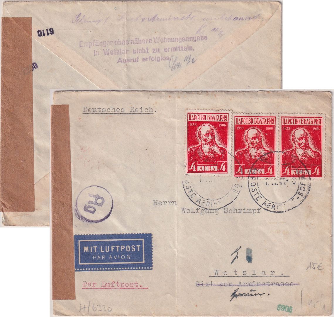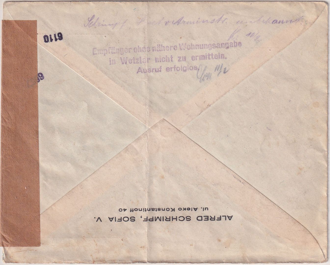 gelaufen n. Wetzlar - rs. Hinweis-L3 PA Wetzlar (Zustellung erfolglos) - OKW-Durchlaufzensur "Ag" - ohne Inhalt