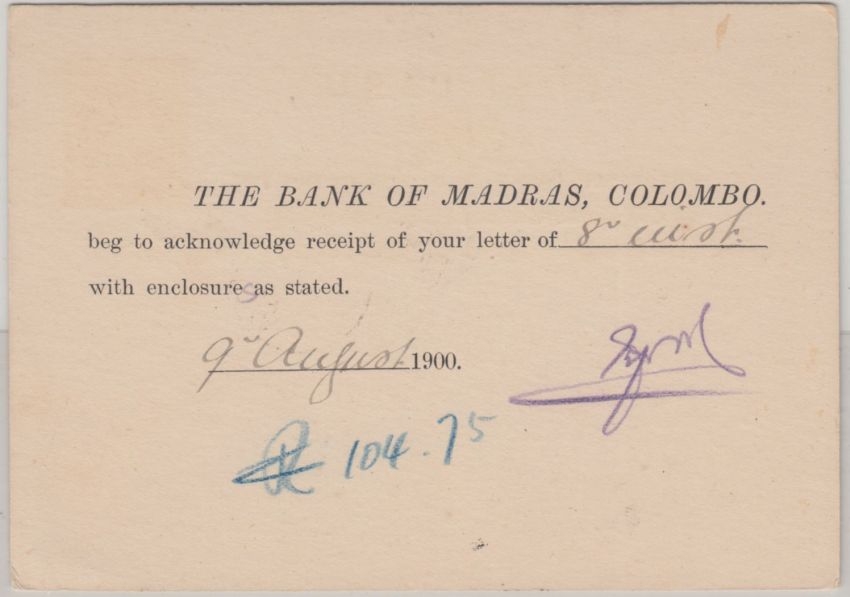 rs. Zudruck der Bank of Madras