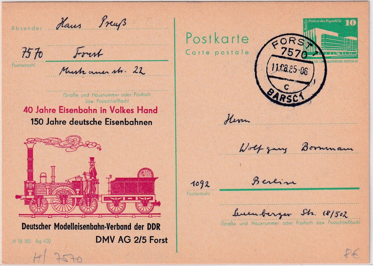 Zudruck d. Dt. Modelleisenbahn-Verbandes der DDR - rs. ohne text